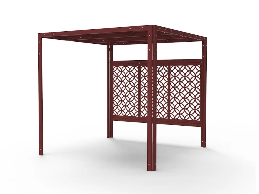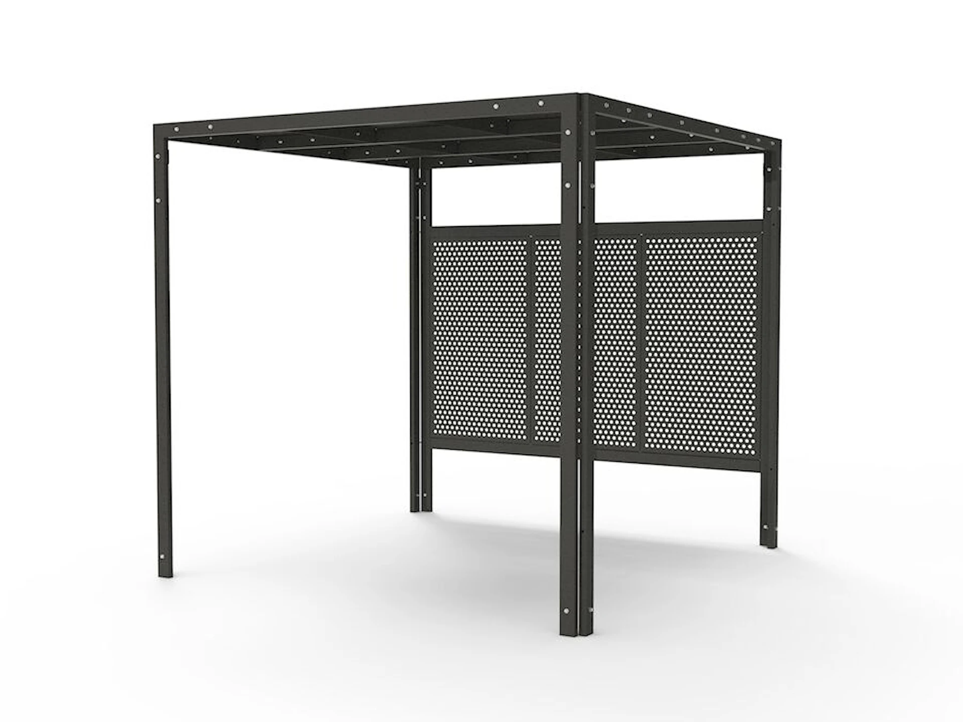 Ballota System Singel Pergola mäter 270 x 270 cm och erbjuds även i dubbel och trippel storlek. Du kan välja att få Ballota levererad antingen med fötter för bultning i mark eller med prefab betongfundament som gjuts ner i marken. Genom att lägga till anti-graffiti-lack kan du placera din pergola även i offentliga utemiljöer med högre slitage.