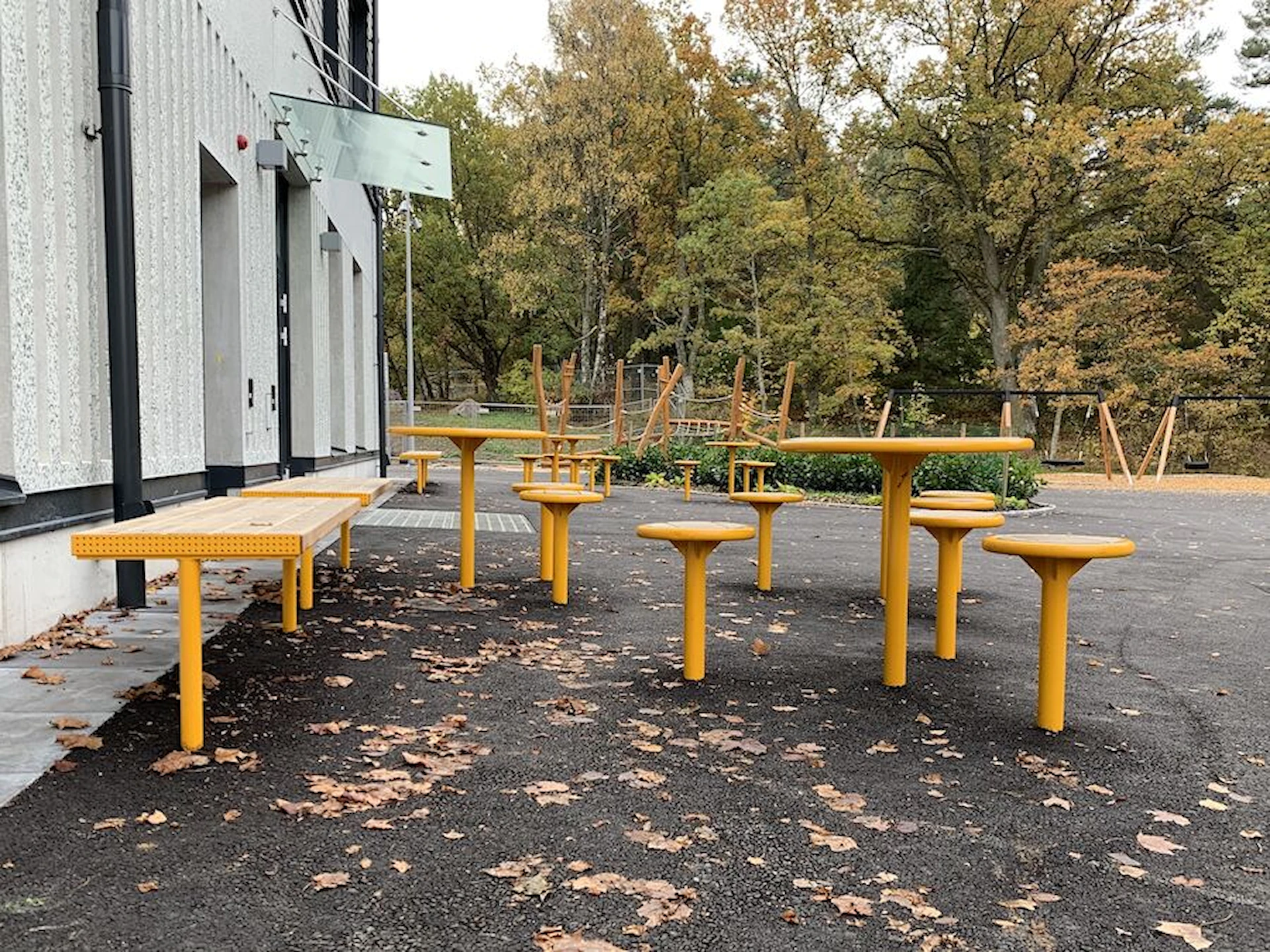Däremot har vi många produkter utan trä som kan levereras i stort sett omgående, exempelvis Boulder Rocks, gungor, mål, basket, bordtennis, fristående rutschar, klätternät, studsmattor, bänkbord med mera.