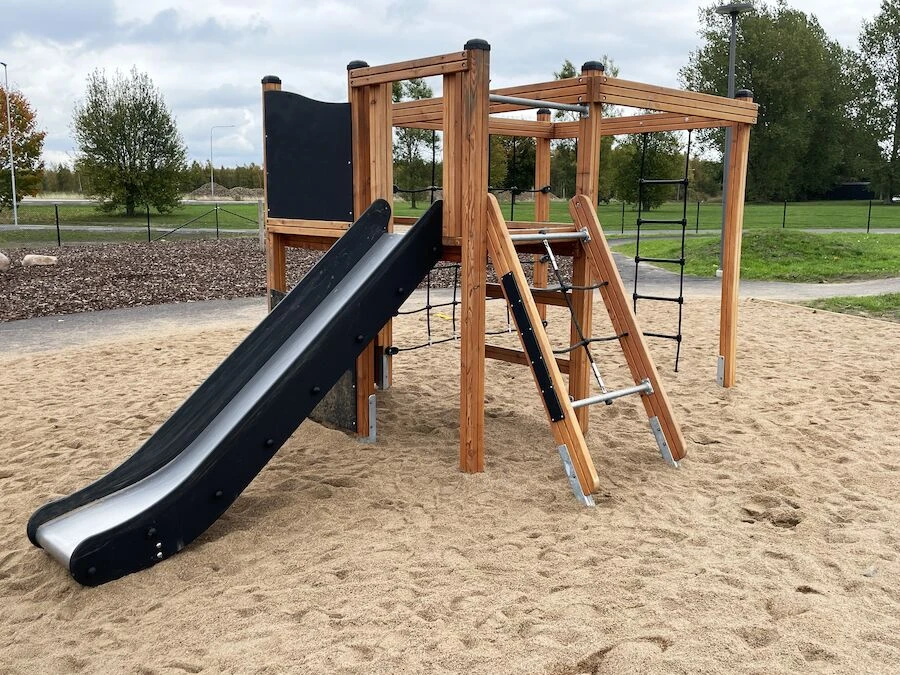 Däremot har vi många produkter utan trä som kan levereras i stort sett omgående, exempelvis Boulder Rocks, gungor, mål, basket, bordtennis, fristående rutschar, klätternät, studsmattor, bänkbord med mera.