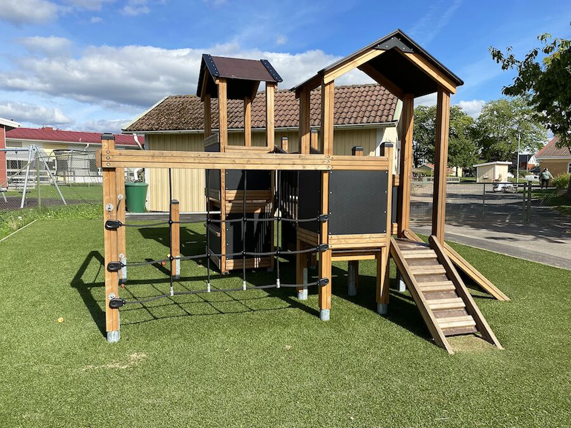 Däremot har vi många produkter utan trä som kan levereras i stort sett omgående, exempelvis Boulder Rocks, gungor, mål, basket, bordtennis, fristående rutschar, klätternät, studsmattor, bänkbord med mera.