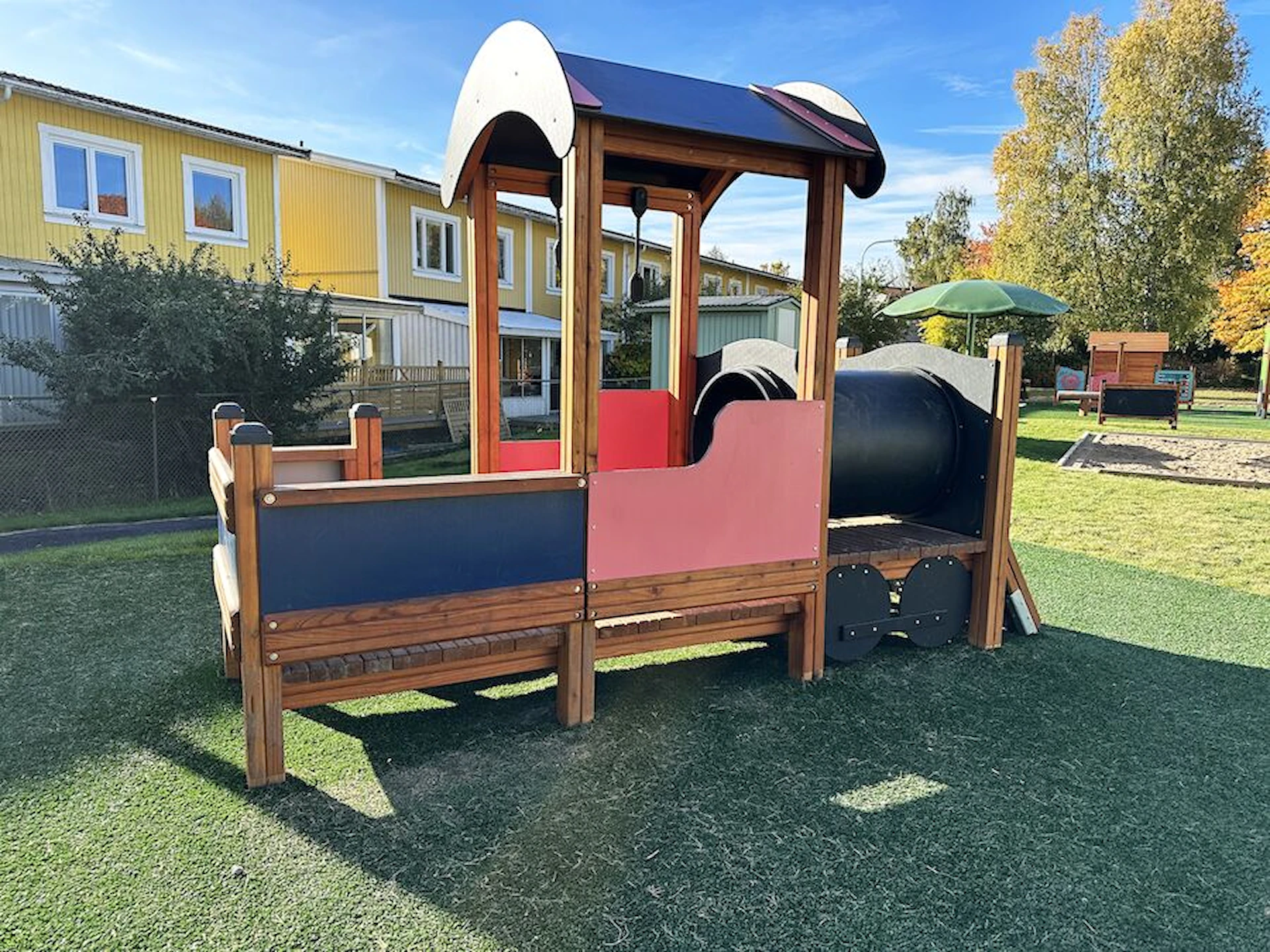 Däremot har vi många produkter utan trä som kan levereras i stort sett omgående, exempelvis Boulder Rocks, gungor, mål, basket, bordtennis, fristående rutschar, klätternät, studsmattor, bänkbord med mera.