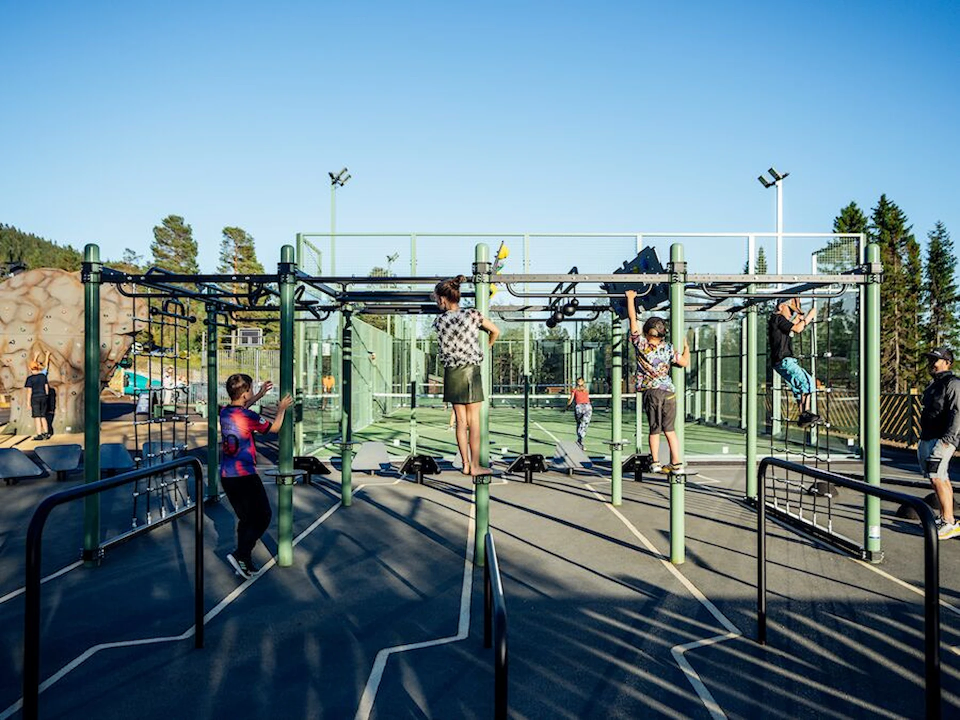 Däremot har vi många produkter utan trä som kan levereras i stort sett omgående, exempelvis Boulder Rocks, gungor, mål, basket, bordtennis, fristående rutschar, klätternät, studsmattor, bänkbord med mera.