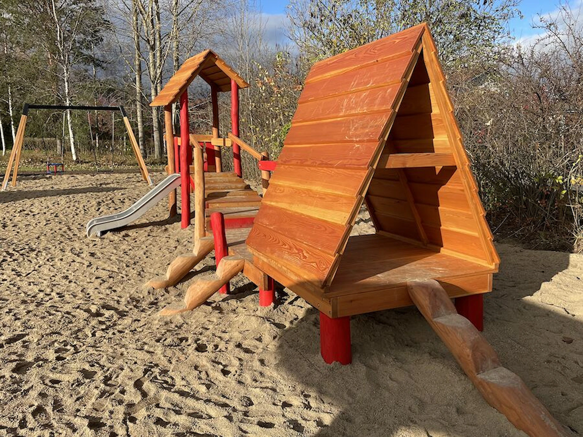 Däremot har vi många produkter utan trä som kan levereras i stort sett omgående, exempelvis Boulder Rocks, gungor, mål, basket, bordtennis, fristående rutschar, klätternät, studsmattor, bänkbord med mera.