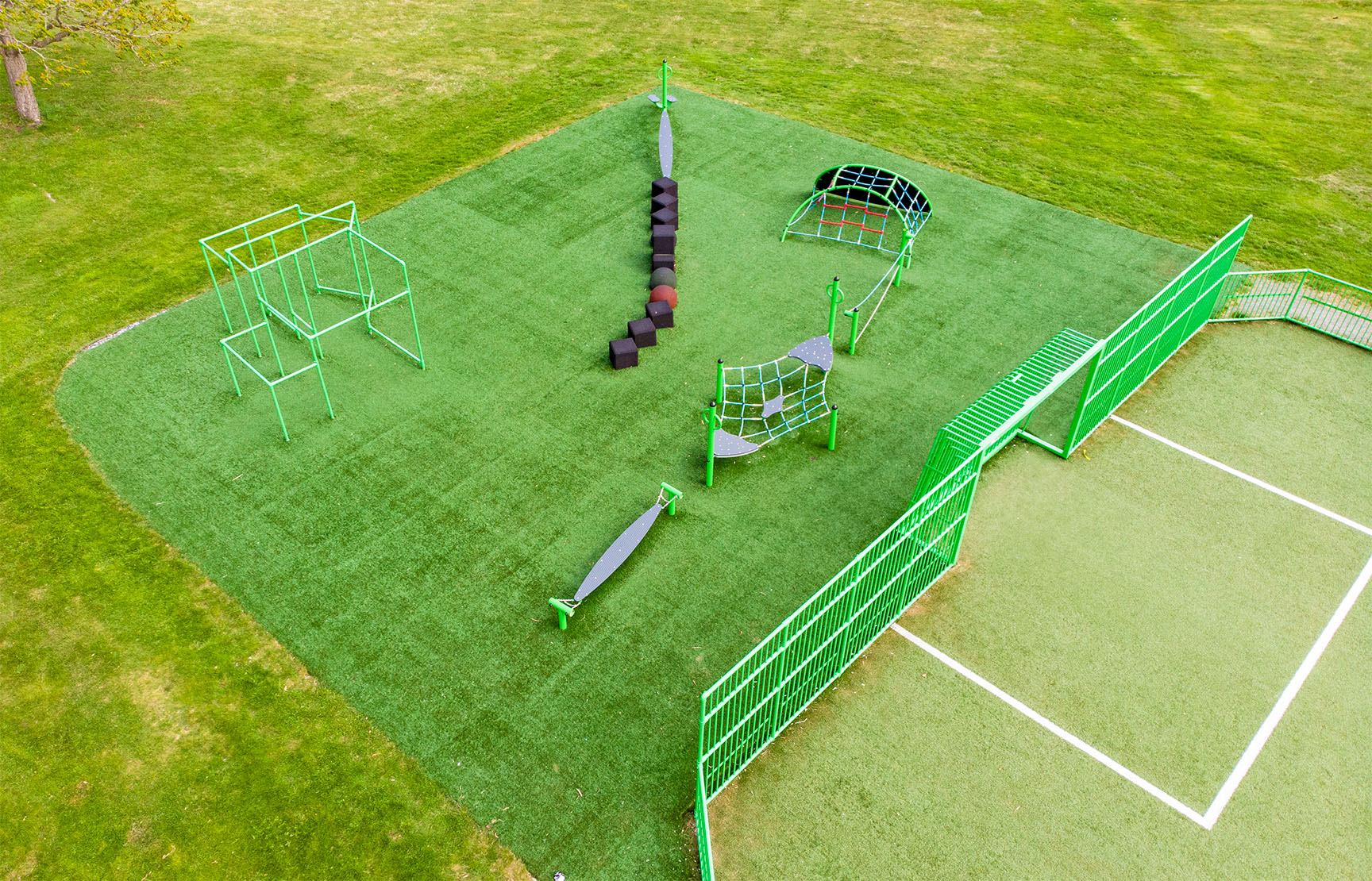 Med dessa produkter behöver du inte tänka på att hägna in eller separera träningsområdet från lekplatsen. All utrustning är godkänd enligt lekplatsstandarden EN 1176.