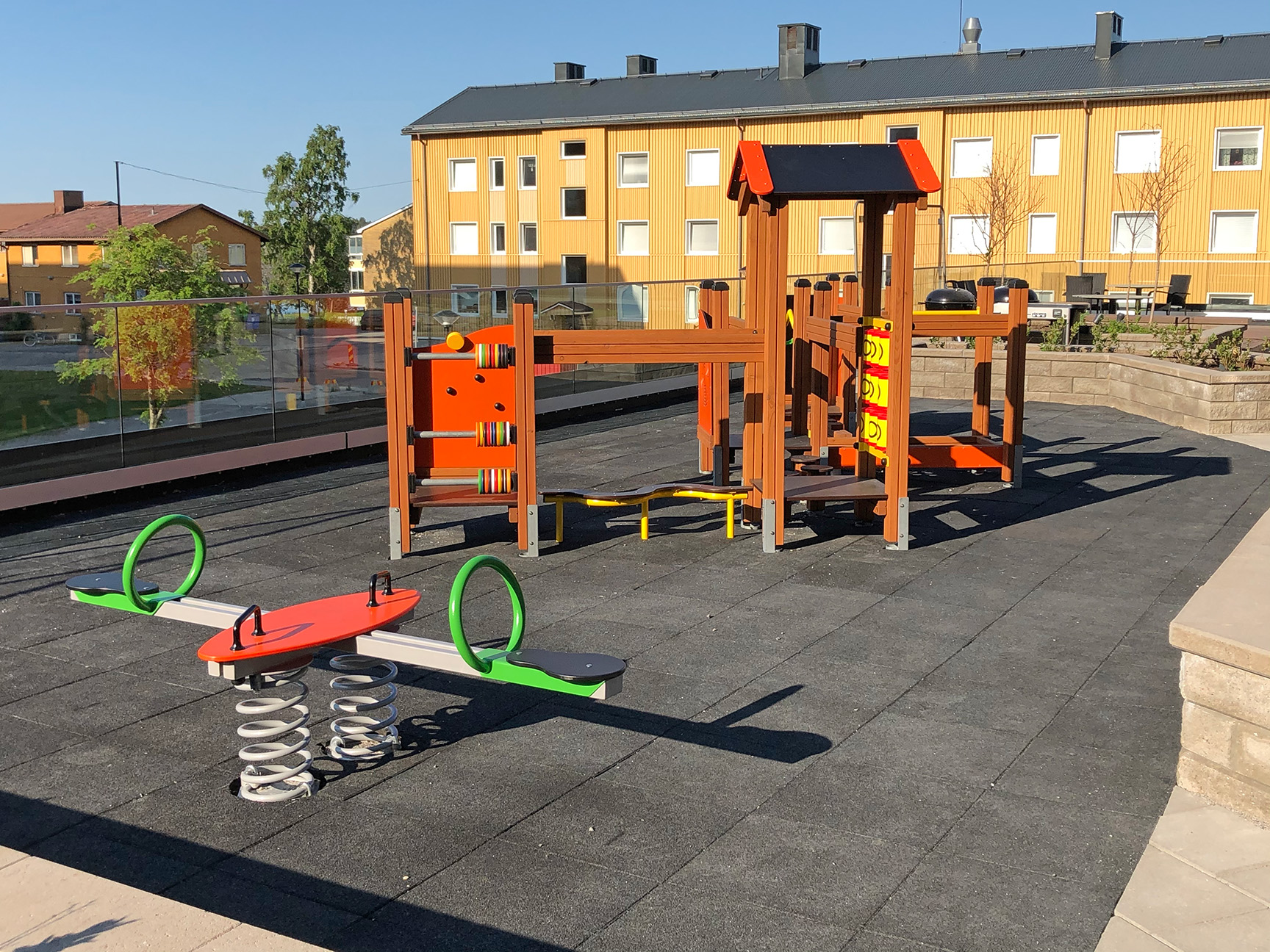 Vi erbjuder flera olika typer av tillgängliga underlag såsom platsgjuten gummi, kork, konstgräs, träflis, barkflis eller fallskyddsplattor. Underlagen går att använda överallt i din utemiljö som på lekplatsen, vid utegymmet eller på din spontanidrottsplats.