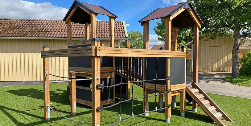 Lekplatsprodukter i stilren och neutral design med diskreta färger kombinerat med oljebehandlat lärkträ. Välj denna serie om du vill att din lekplats ska harmoniera med naturen runt omkring.