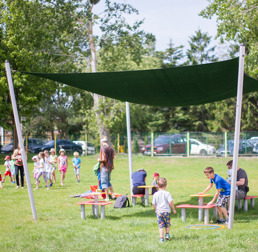 Blött, sandigt och soligt. Ja, så kan det bli på de där härliga dagarna på lekplatsen! Här hittar du ett spännande utbud av lekplatsprodukter som bjuder in till kreativ lek med sand och vatten. För de dagar när solen steker lite extra, är det också viktigt att tänka på skugga – därför erbjuder vi lösningar som stora segel eller tak som skyddar de minsta från starka solstrålar.