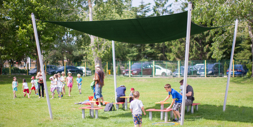 Solsegel för lekplatsen som ger skugga & skydd för regn