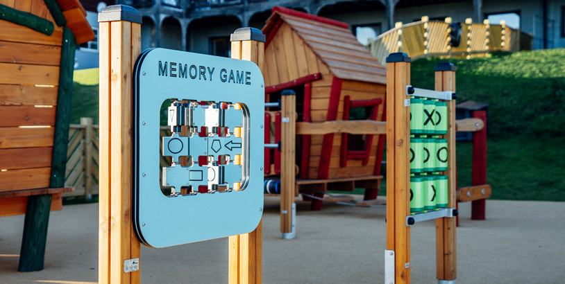 Bland våra lekplatsprodukter med tema spel hittar du bland annat olika spännande lekpaneler där barnen kan träna klockan, spela memory, bygga pussel och spela luffarschack.