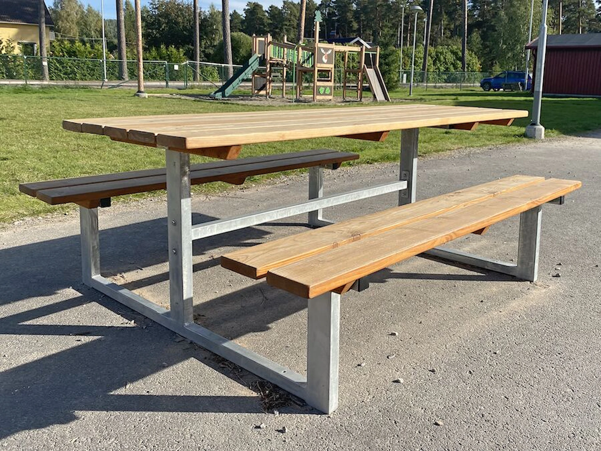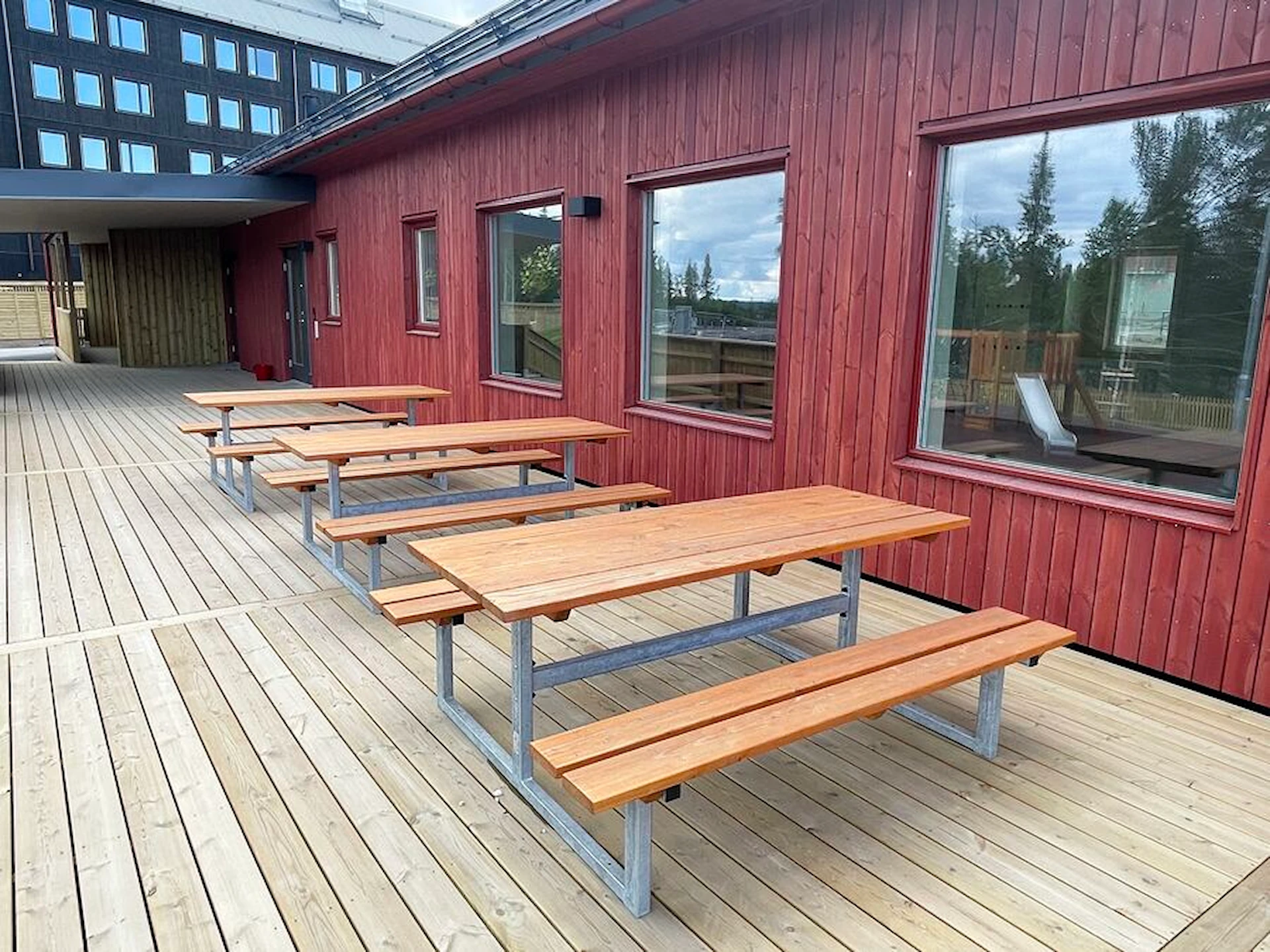 Däremot har vi många produkter utan trä som kan levereras i stort sett omgående, exempelvis Boulder Rocks, gungor, mål, basket, bordtennis, fristående rutschar, klätternät, studsmattor, bänkbord med mera.