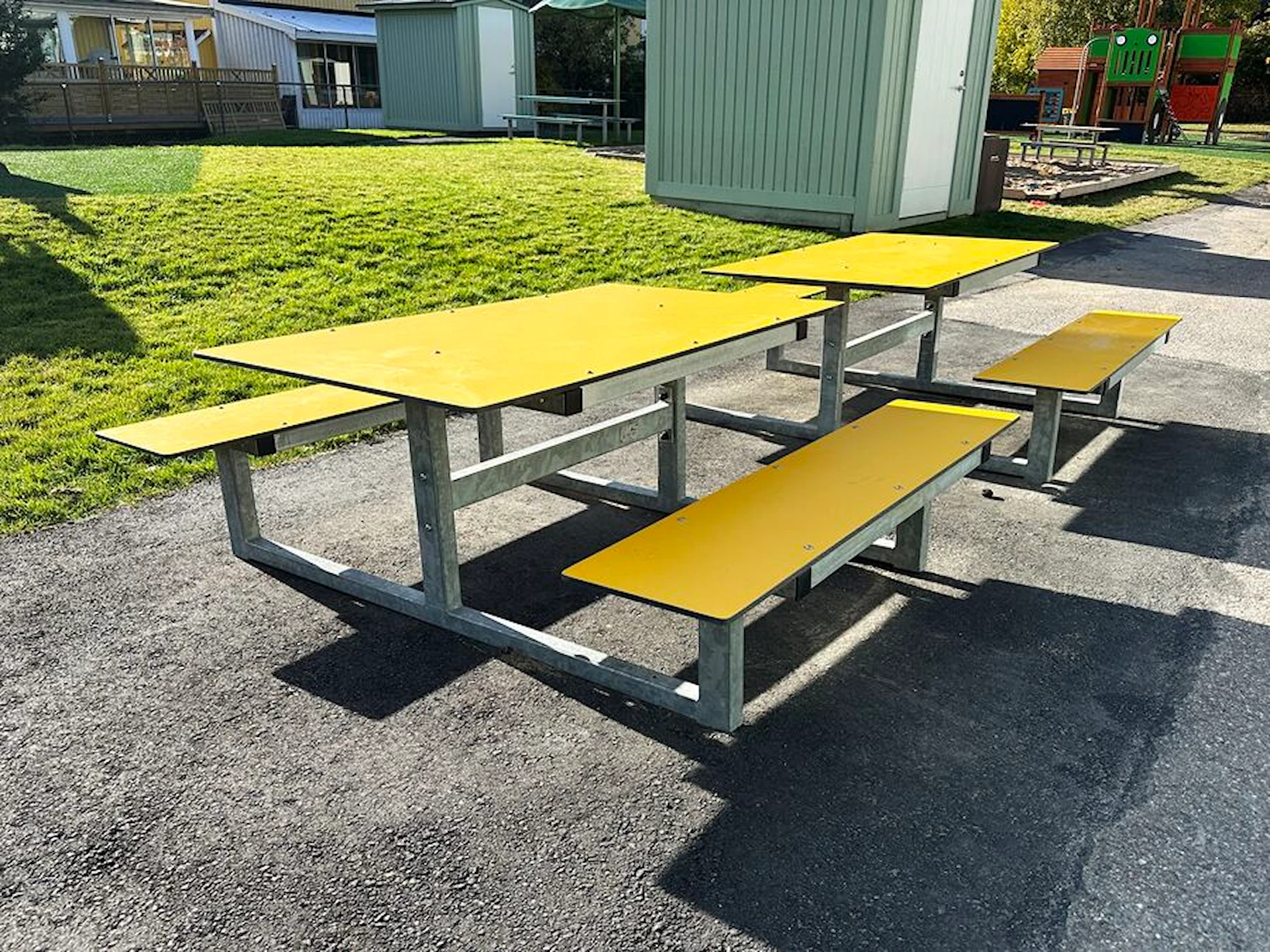 Däremot har vi många produkter utan trä som kan levereras i stort sett omgående, exempelvis Boulder Rocks, gungor, mål, basket, bordtennis, fristående rutschar, klätternät, studsmattor, bänkbord med mera.