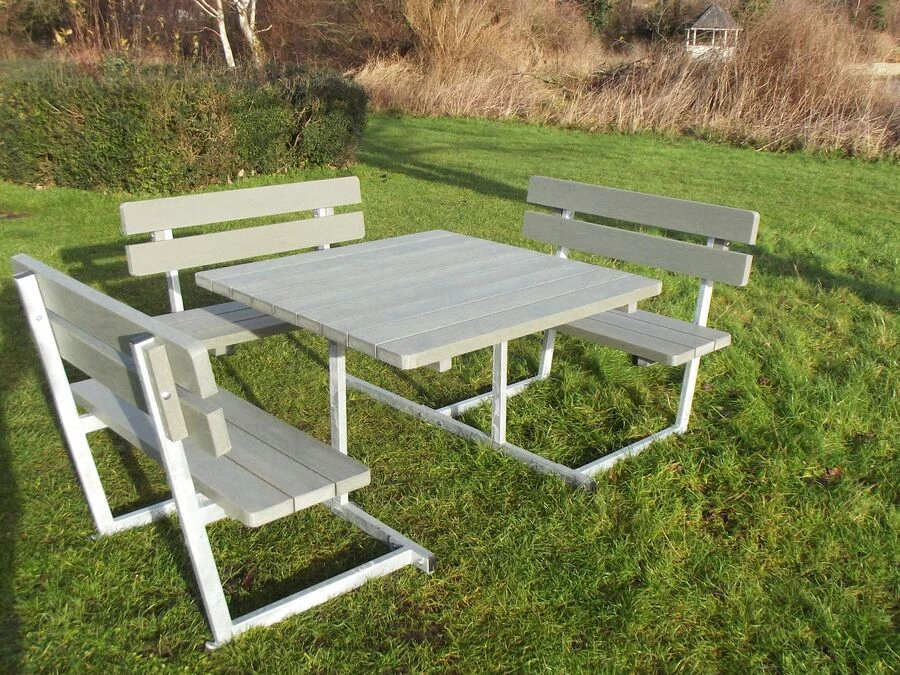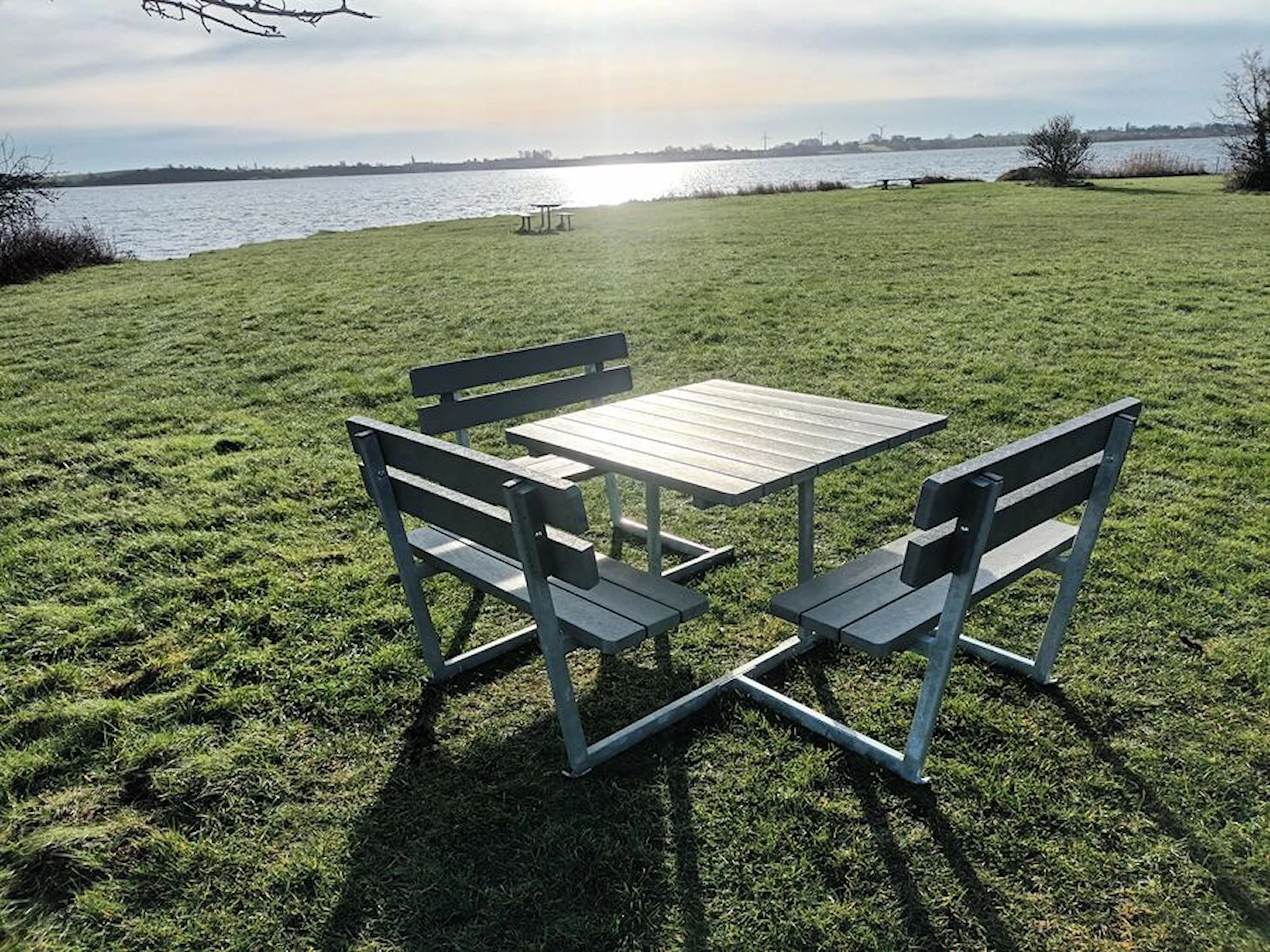 Bänkbordet kan levereras i färgerna grå, brun eller svart, där grå är standard. Dansktillverkade kvalitetsmöbler till utemiljön. Här kan både stora och små sällskap umgås runt samma bord.