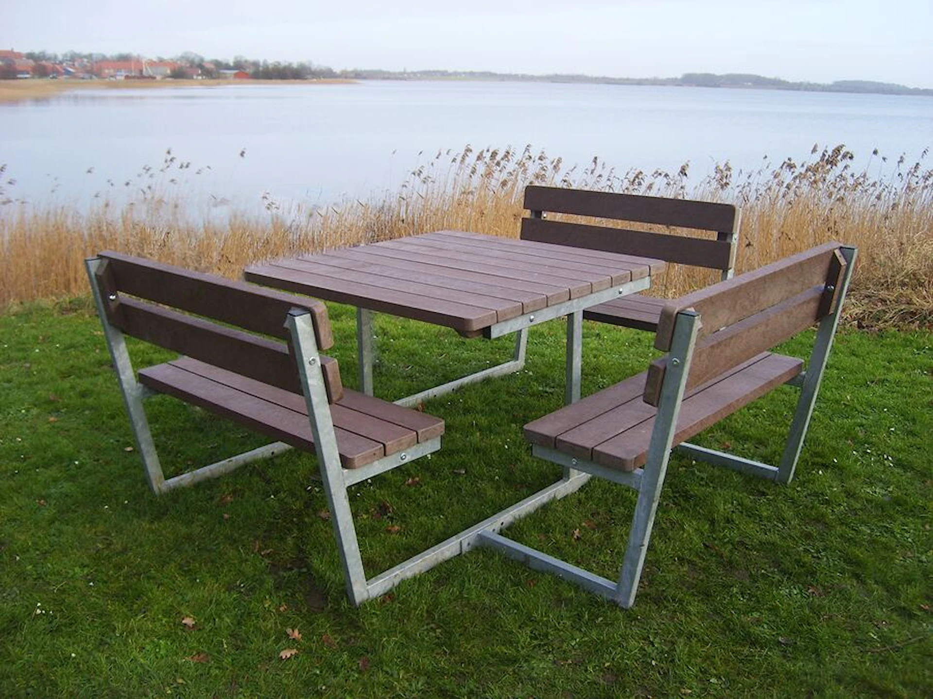 Bänkbordet kan levereras i färgerna grå, brun eller svart, där grå är standard. Dansktillverkade kvalitetsmöbler till utemiljön. Här kan både stora och små sällskap umgås runt samma bord.