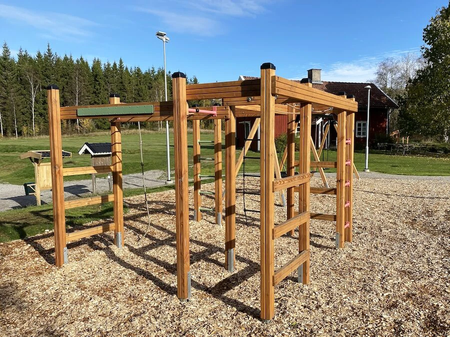 Däremot har vi många produkter utan trä som kan levereras i stort sett omgående, exempelvis Boulder Rocks, gungor, mål, basket, bordtennis, fristående rutschar, klätternät, studsmattor, bänkbord med mera.