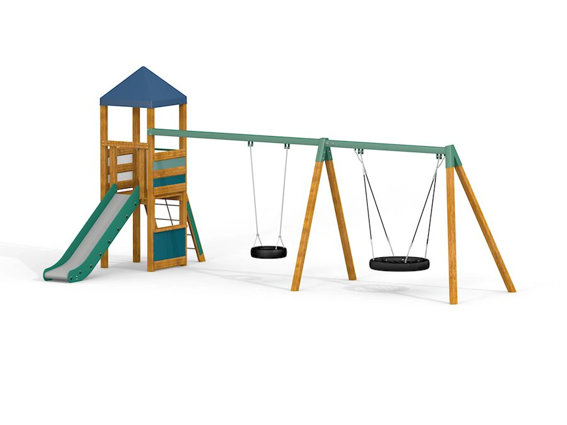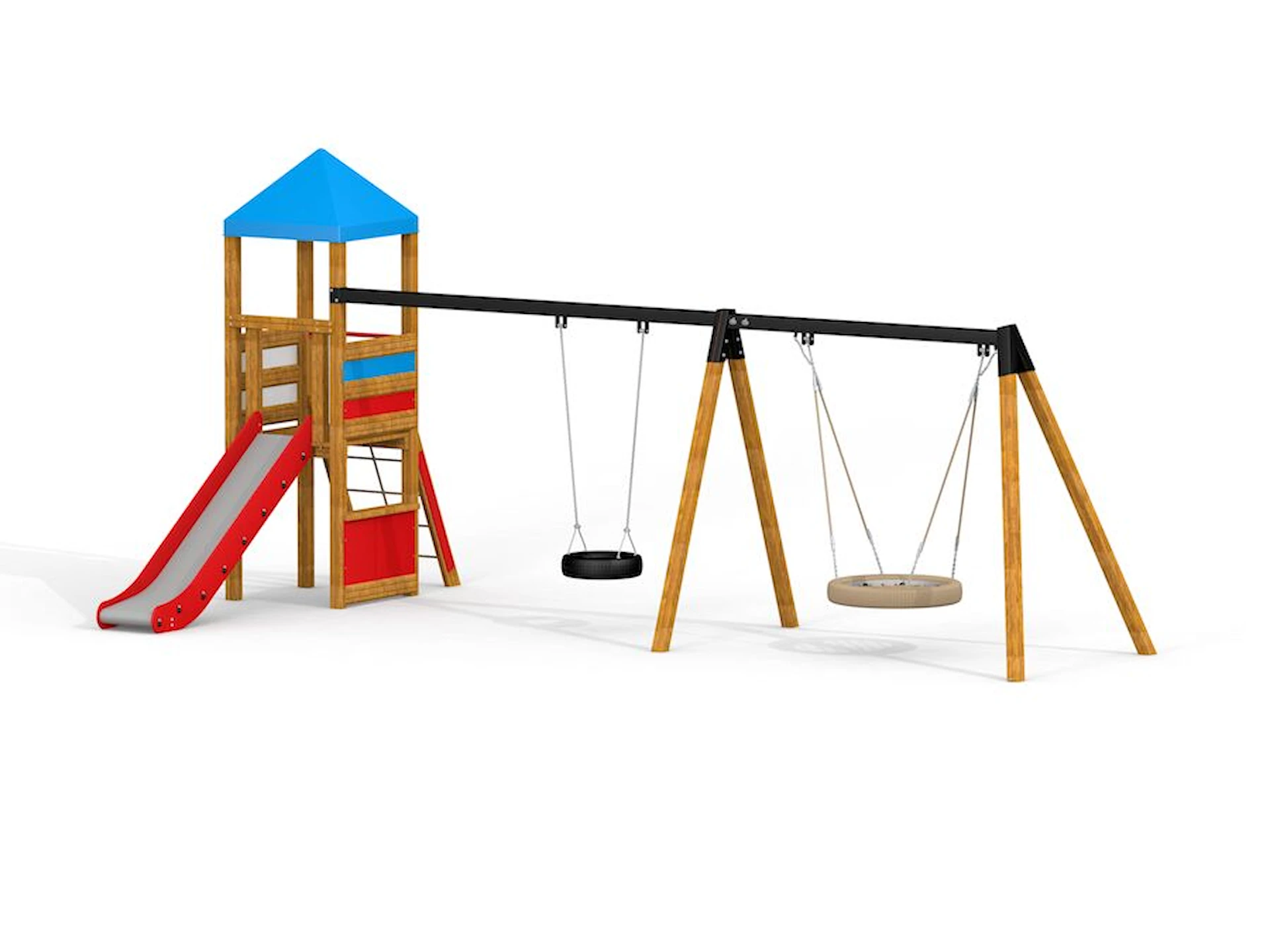 Däremot har vi många produkter utan trä som kan levereras i stort sett omgående, exempelvis Boulder Rocks, gungor, mål, basket, bordtennis, fristående rutschar, klätternät, studsmattor, bänkbord med mera.