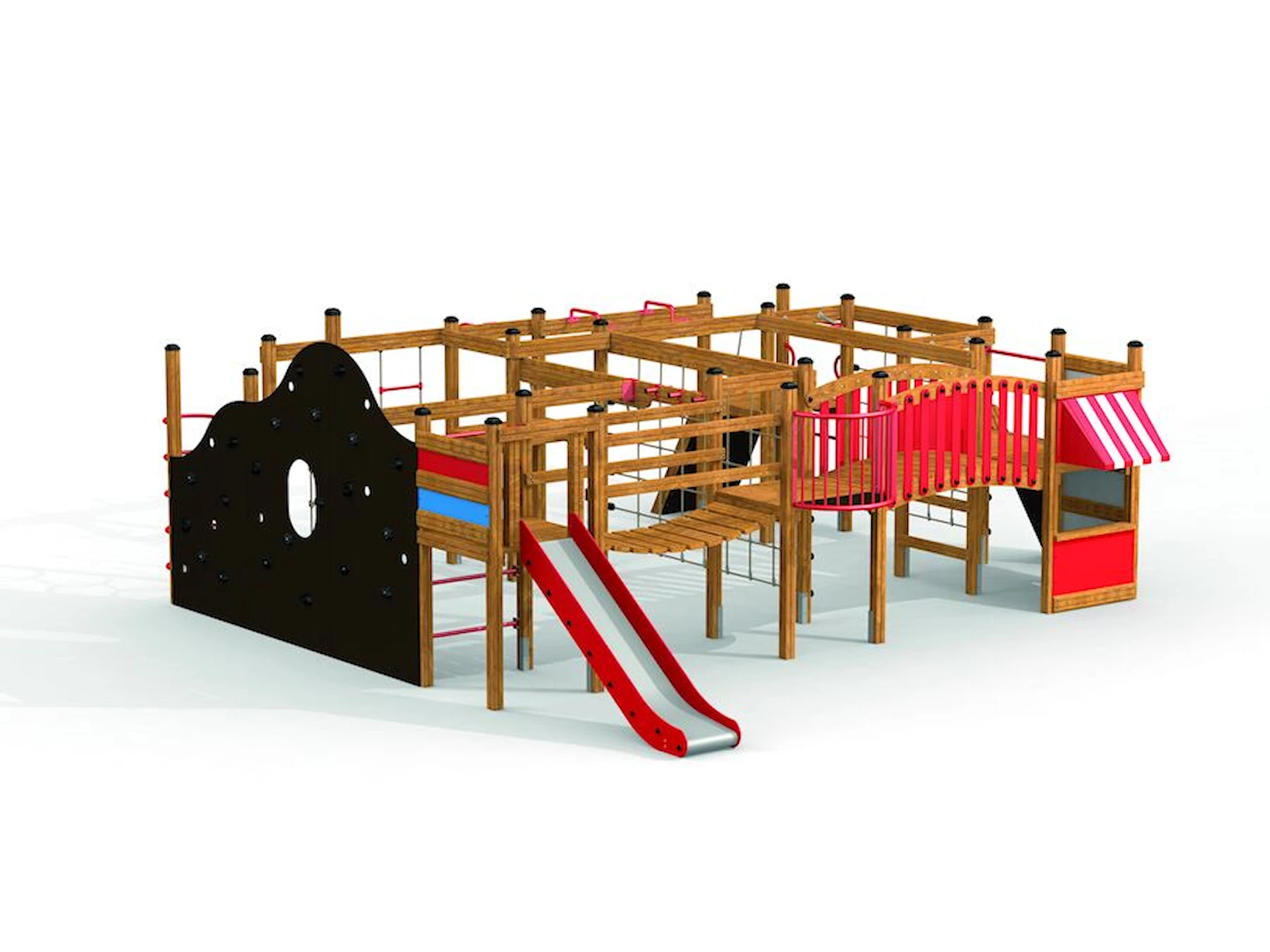 Däremot har vi många produkter utan trä som kan levereras i stort sett omgående, exempelvis Boulder Rocks, gungor, mål, basket, bordtennis, fristående rutschar, klätternät, studsmattor, bänkbord med mera.
