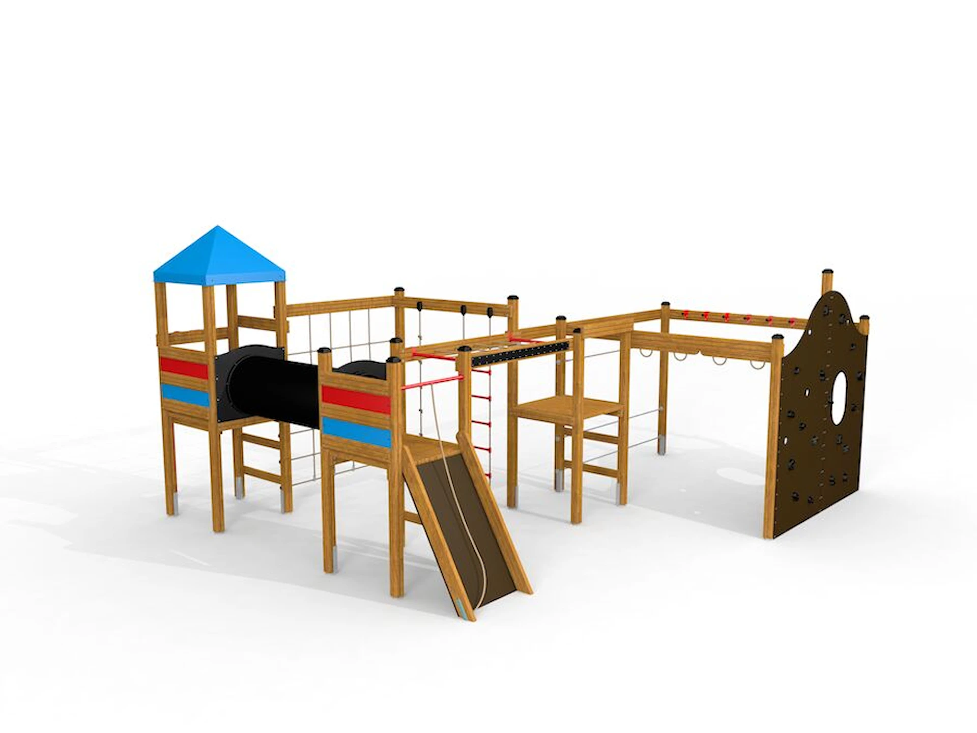 Däremot har vi många produkter utan trä som kan levereras i stort sett omgående, exempelvis Boulder Rocks, gungor, mål, basket, bordtennis, fristående rutschar, klätternät, studsmattor, bänkbord med mera.