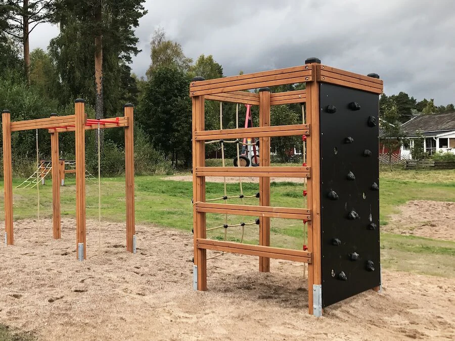 Däremot har vi många produkter utan trä som kan levereras i stort sett omgående, exempelvis Boulder Rocks, gungor, mål, basket, bordtennis, fristående rutschar, klätternät, studsmattor, bänkbord med mera.