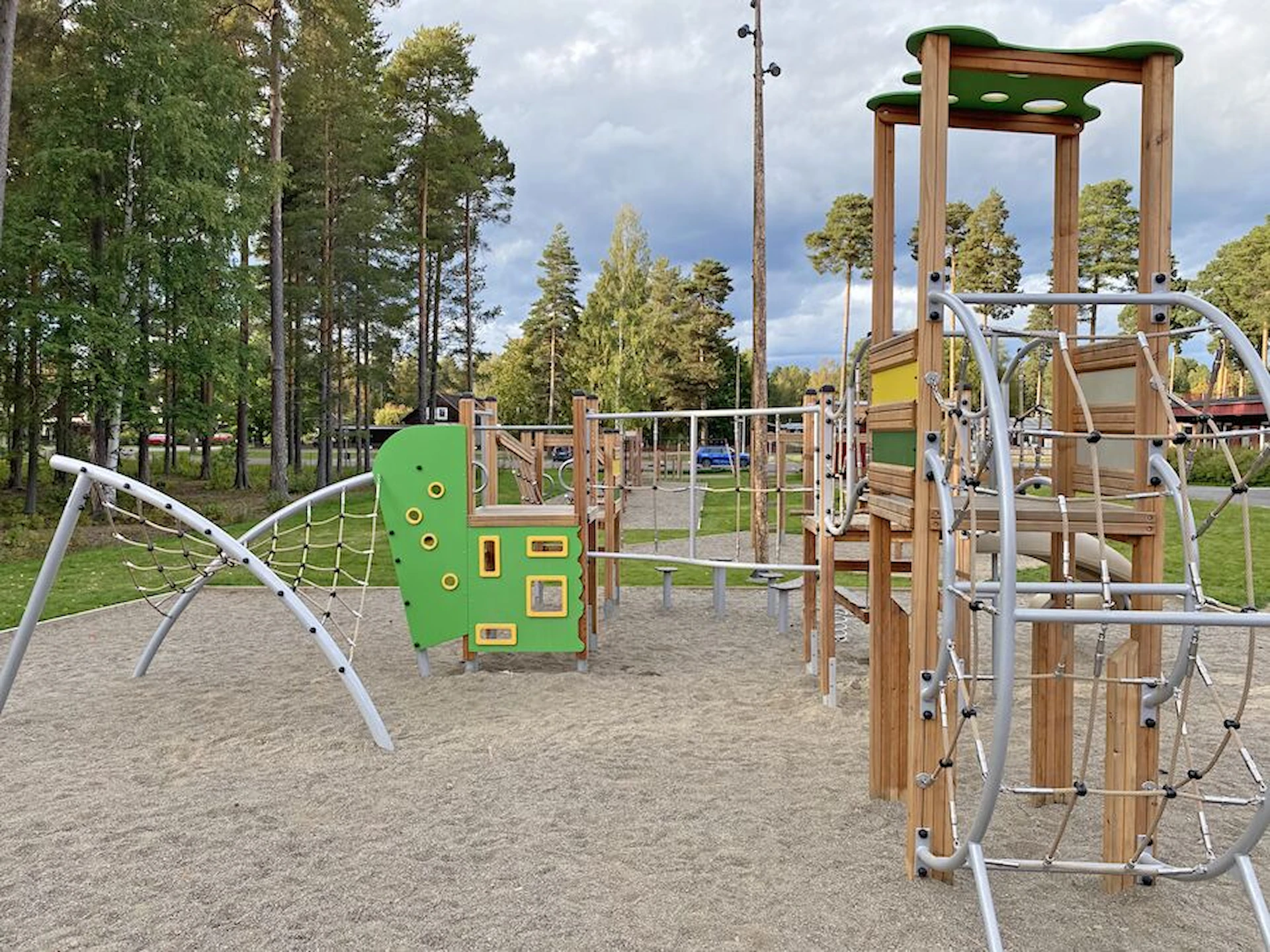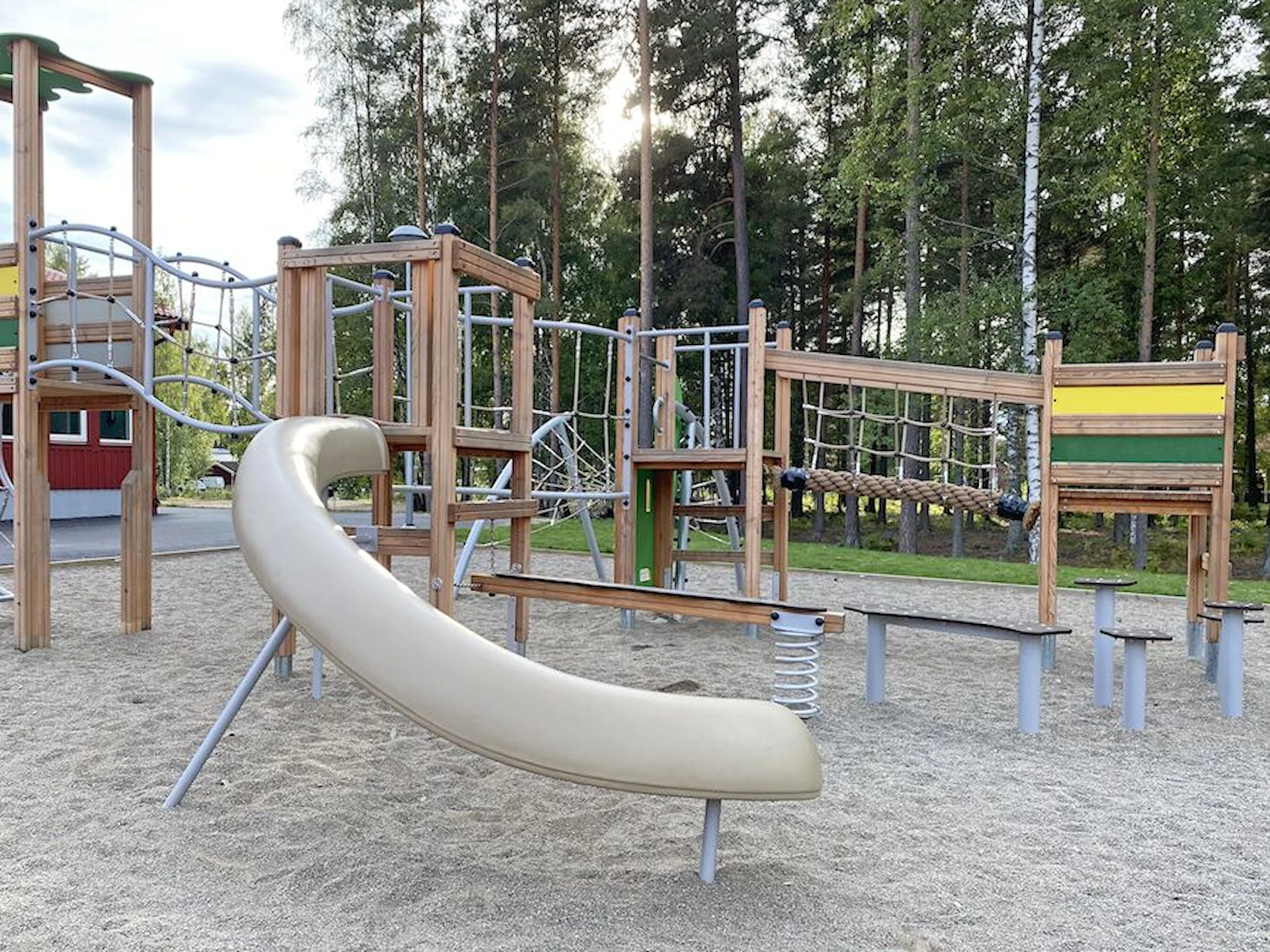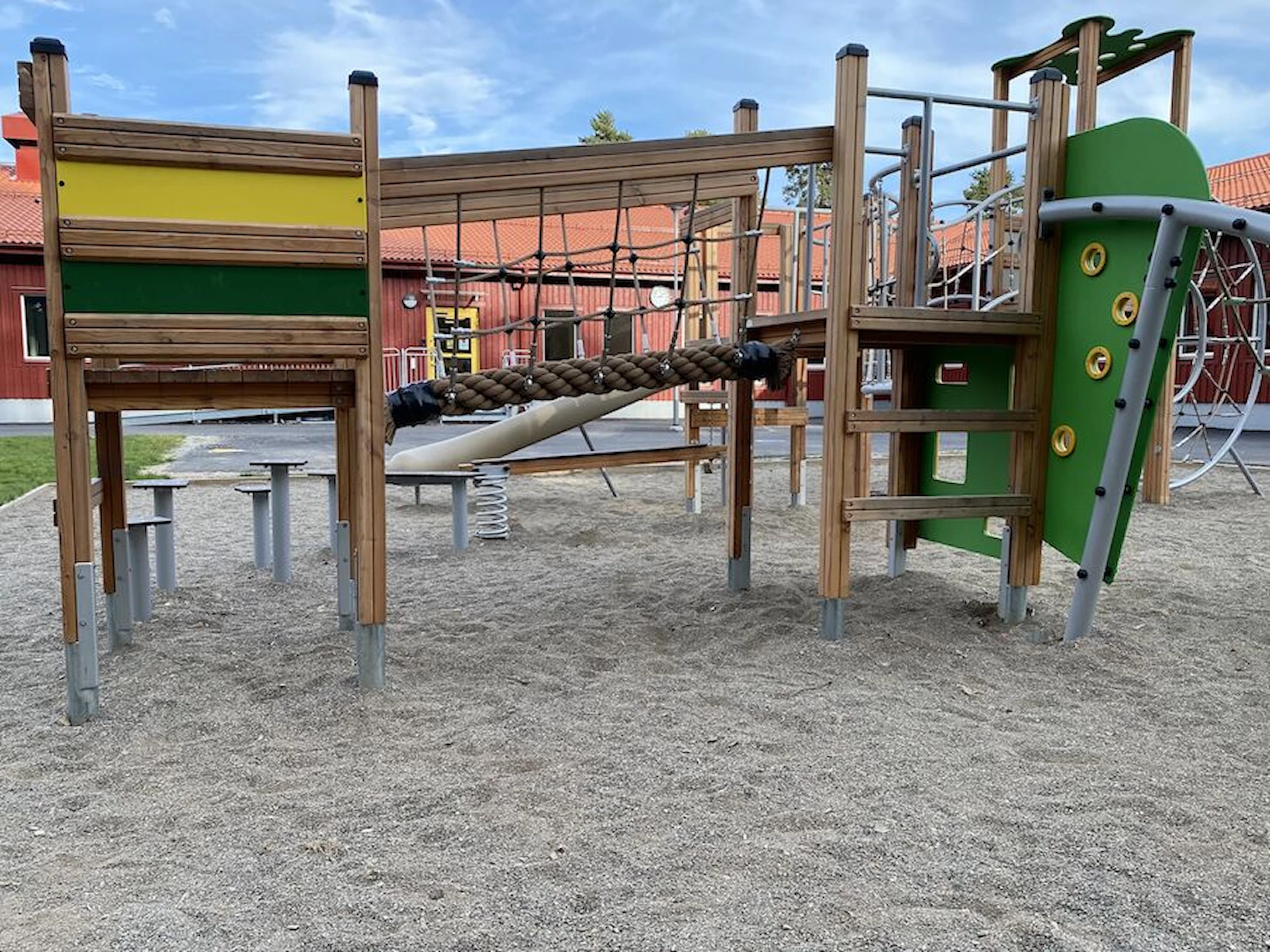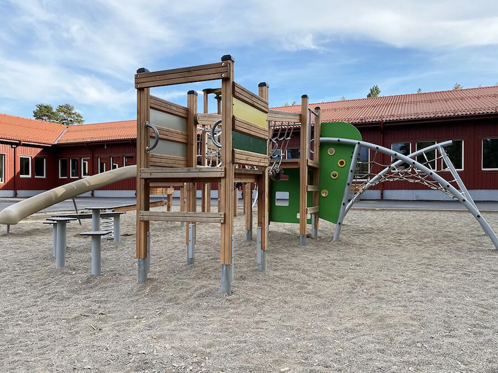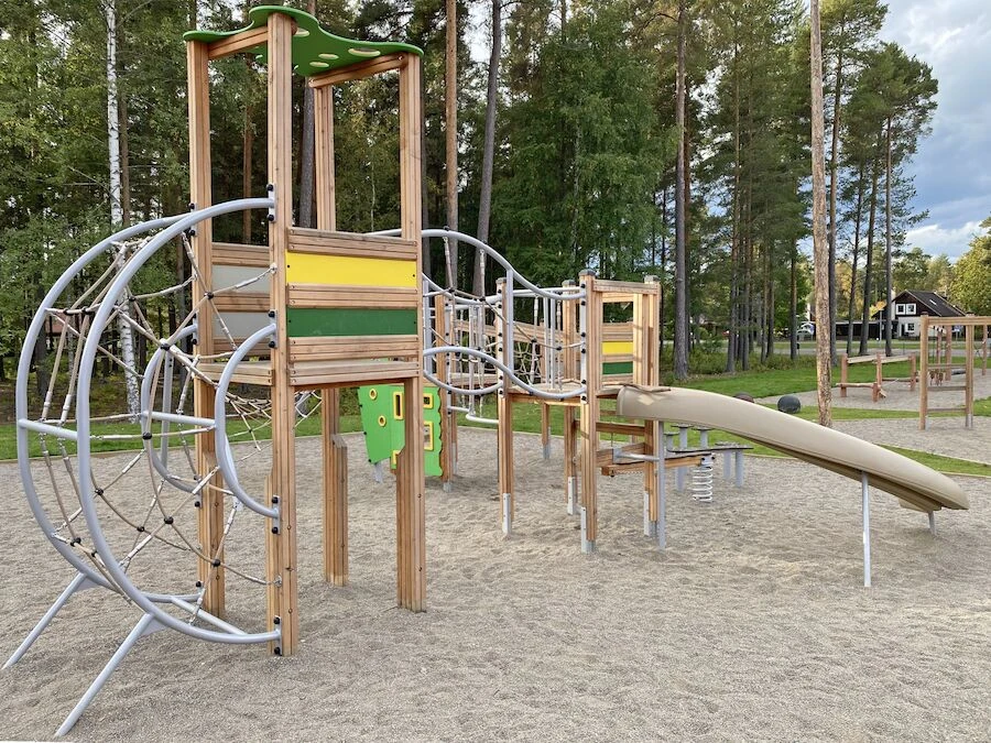 Däremot har vi många produkter utan trä som kan levereras i stort sett omgående, exempelvis Boulder Rocks, gungor, mål, basket, bordtennis, fristående rutschar, klätternät, studsmattor, bänkbord med mera.