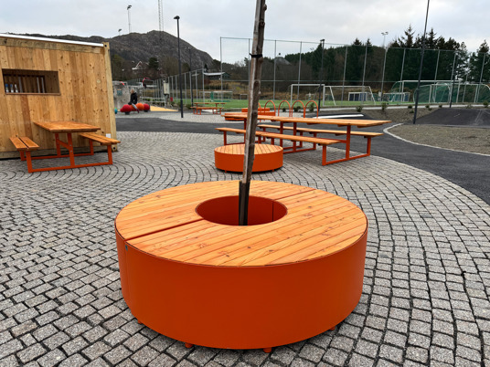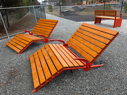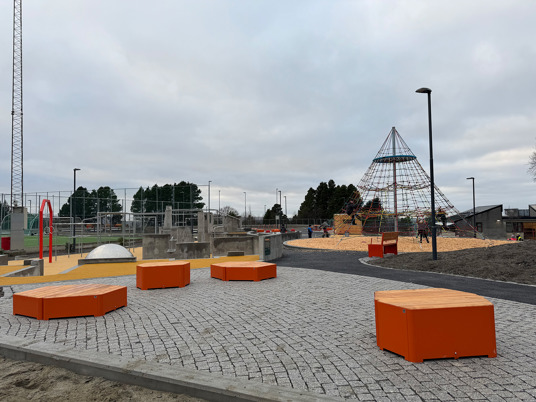 Bland leveranserna hittar du parkmöbler från Mobilis Design i specialanpassade RAL-färger och klätterpyramiden Mega som erbjuder utmaningar för dig som gillar klättring. Dessutom cykelställ, balanskulor, utomhussportutrustning och parkourutrustning.