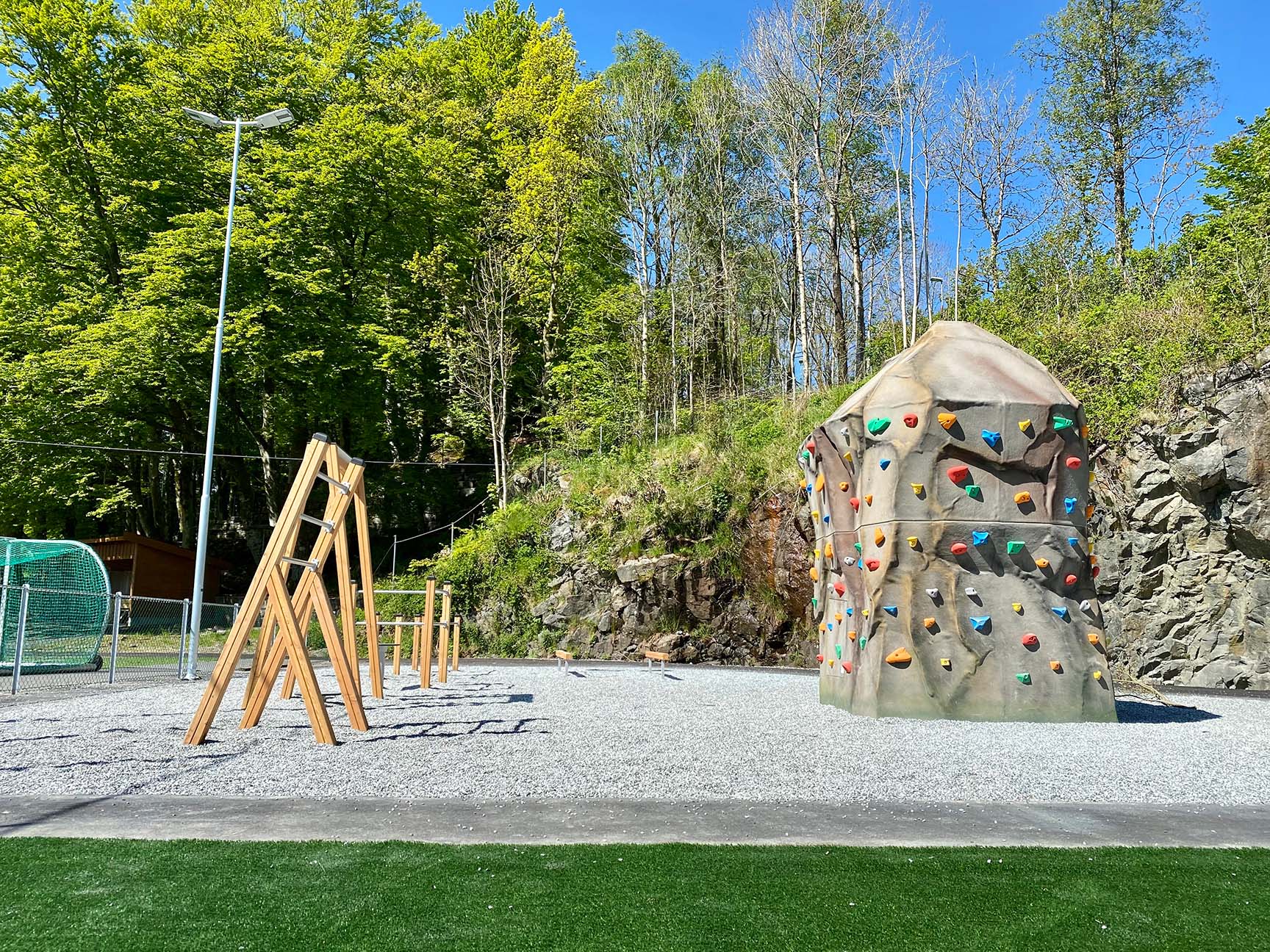 På Manger i Alver kommun ville Manger IL använda sitt utrymme till en fotbollsplan, men även andra fartfyllda aktiviteter. Detta resulterade i en stor fotbollsplan, en modern FlowTrack på 42 meter, en klättersten på 4,45 meter över marken och ett klassiskt utegym med 6 stationer som tränar balans, rörlighet och muskler för hela kroppen. Här kan stora och små samlas för gemensamma spännande aktiviteter.