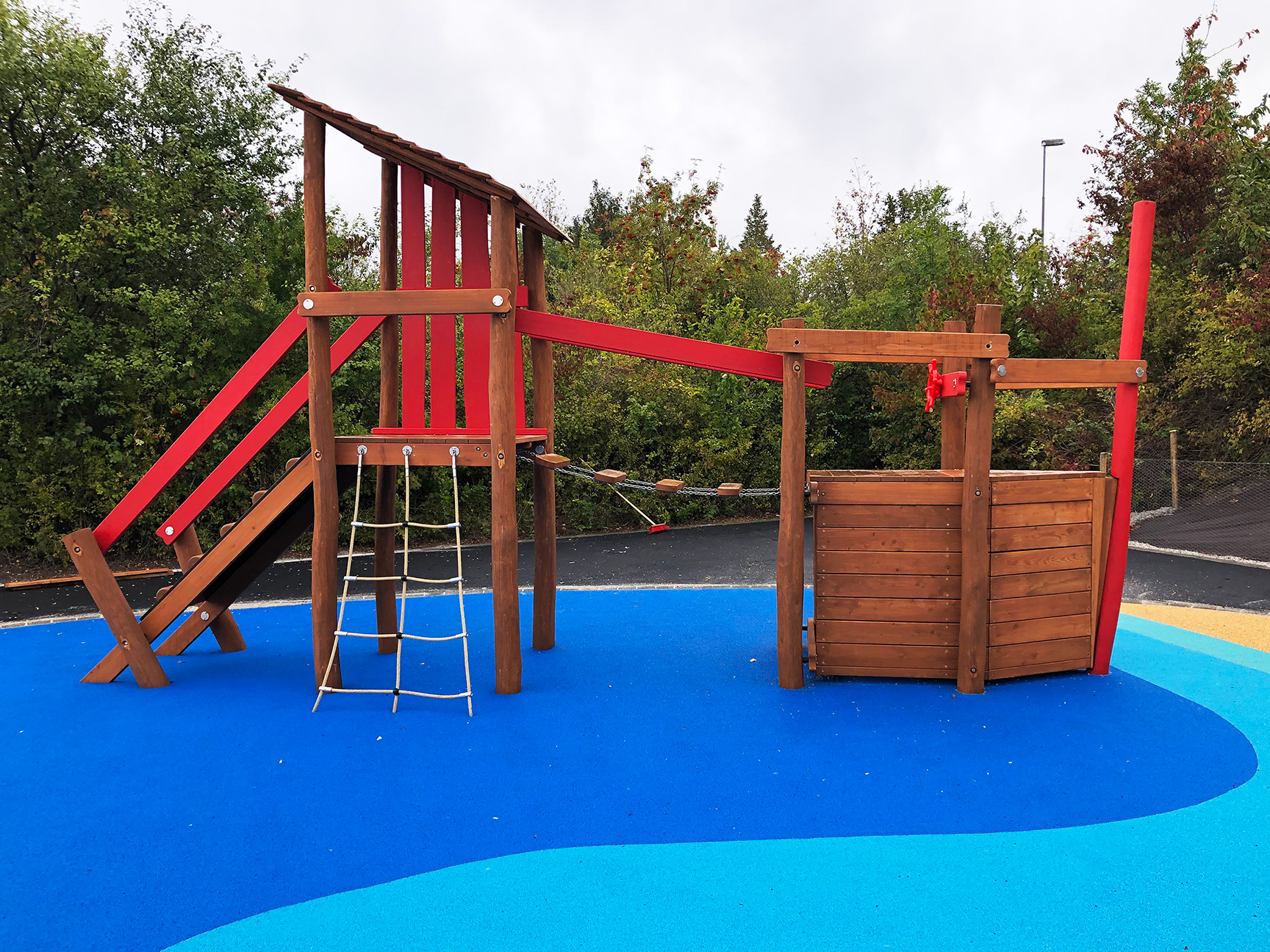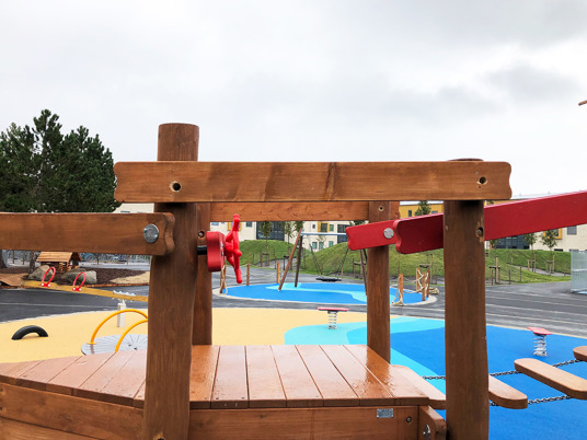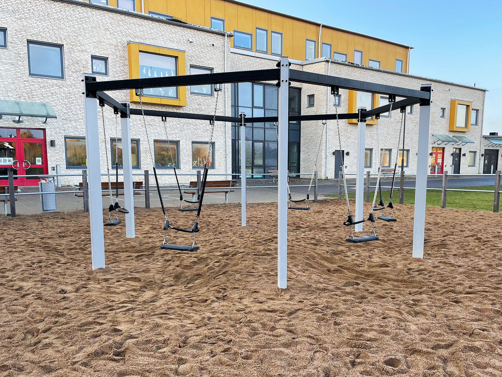 Gungställningen har plats för sex gungande barn samtidigt. Roliga båten ger många timmars rollekar och social träning.