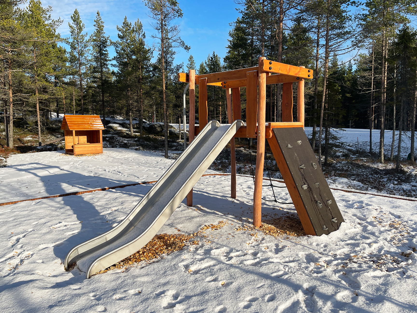 Genom ett mycket bra samarbete med entreprenören kunde vi färdigställa en tillgänglig rastplats i ett otroligt vackert område, som välkomnar alla som behöver en paus på resan. Lekutrustningen kommer från våra serier Raw Nature och True Nature, och passar perfekt in i omgivningen.