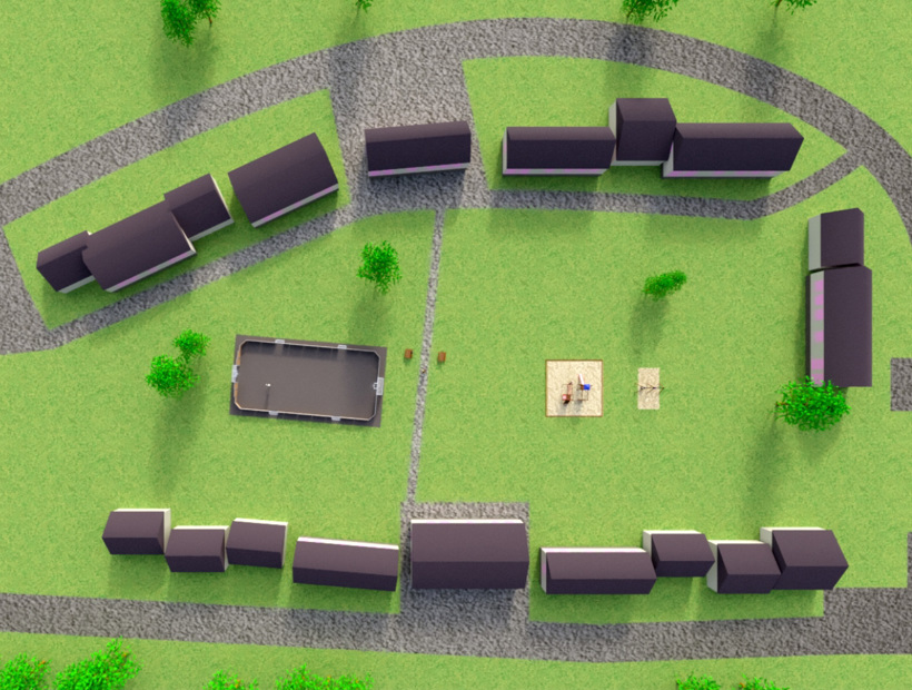 Lessebohus sökte och fick bidrag från Boverket för att skapa en ny lekplats i bostadsområdet i Kosta. Fastighetsbolaget ville de få ut så mycket lekvärde som möjligt utan att tumma på kvaliteten. Tress ritade upp ett förslag som presenterades för kunden. Här fanns en multiarena, gungställning, klätterställning samt bänkbord, cykelställ och papperskorgar inritade. En komplett lekplats för barnen i området.
