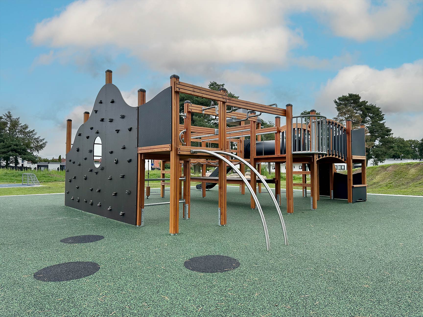 Tress har levererat utrustningen och monterat den nya lekplatsen i samarbete med ansvarig arkitekt.