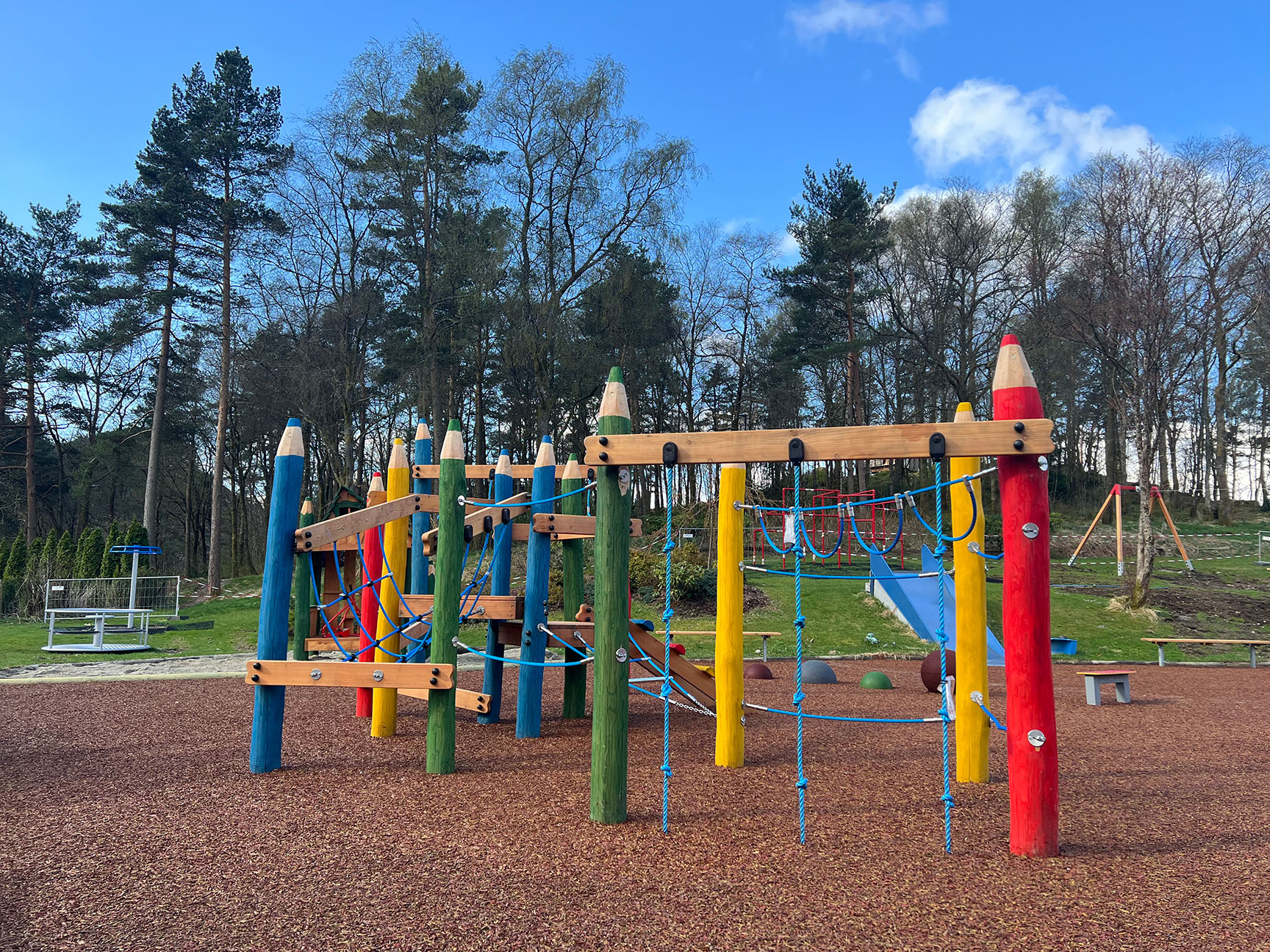 Flera av lekredskapen på Lynghaug BRF har en fantasifull och färgstark twist i sin design som inbjuder till rollspel och spännande lek för de minsta.