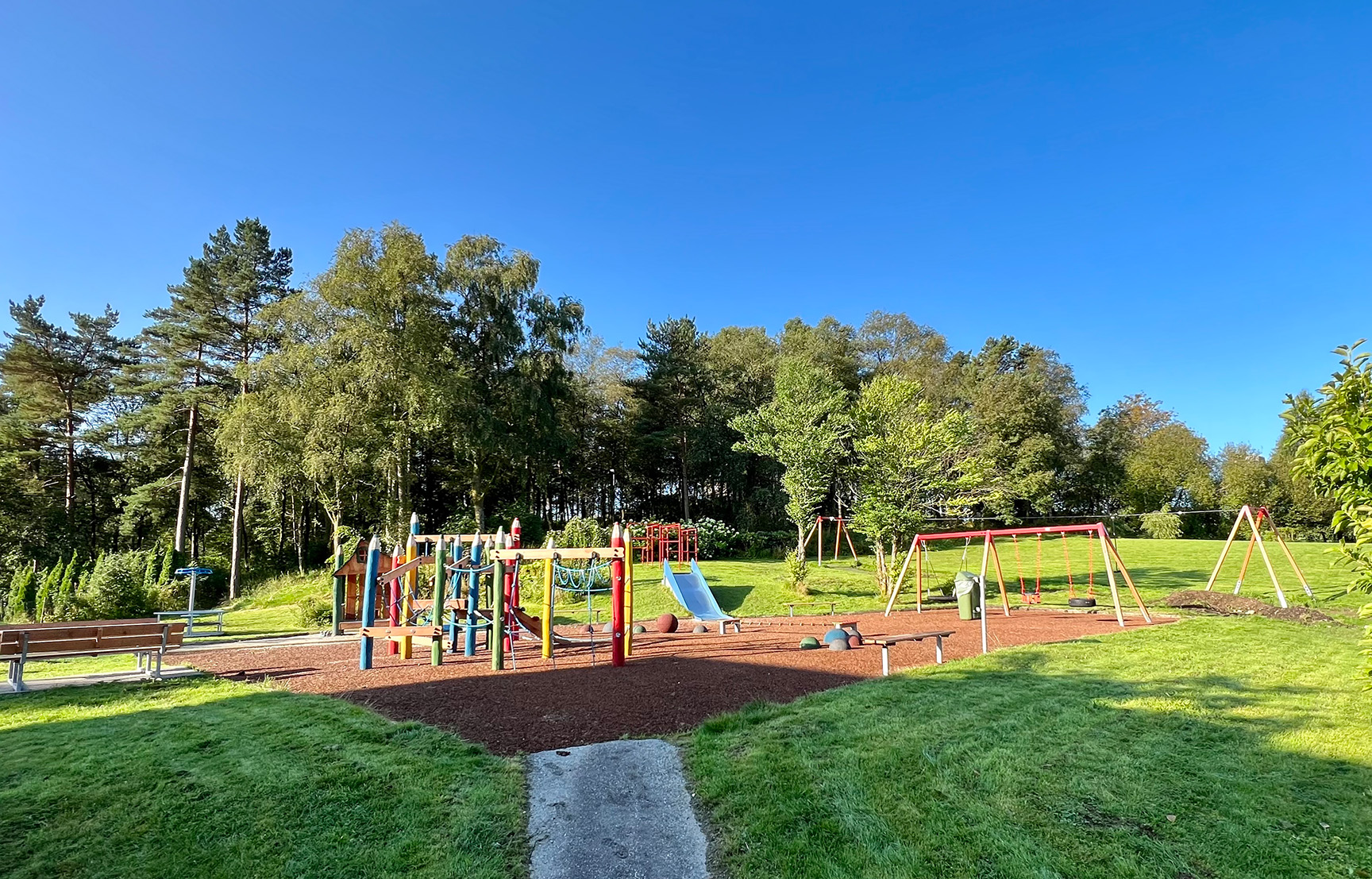 På lekplatsen i Lynghaug BRF har de boende nu gott om plats att leka och ha kul, men också att slå sig ner i en social zon.