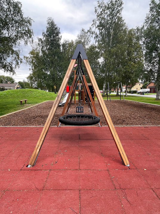 Här finns allt man kan önska sig i en lekpark; gungor, lekställningar, linbana, lekhus och sandlåda. En härlig mötesplats för hela familjen, med sittplatser och grillmöjligheter. På vinter går det fint att åka pulka på kullen.
