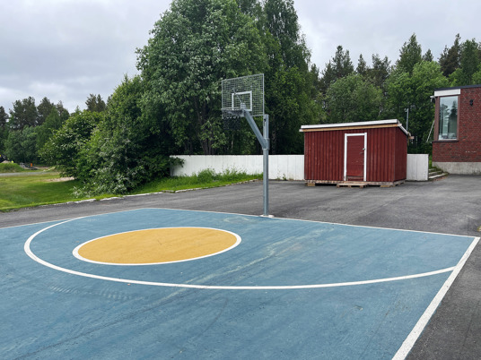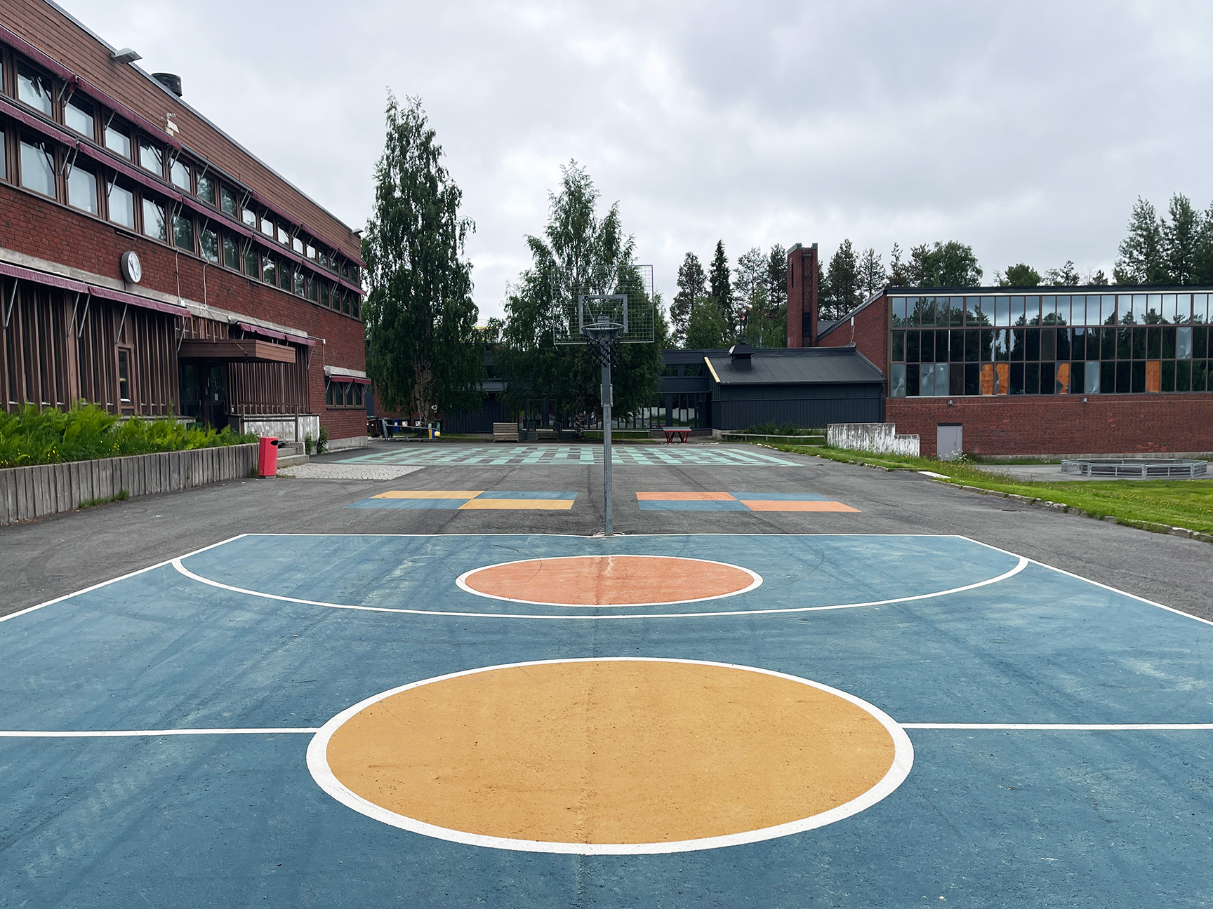 En av de mest iögonfallande delarna i projektet är den nya basketplanen. Med ett färgschema inspirerat av Norrland – himmel, solnedgång och skymning – skapas en upplyftande atmosfär som bjuder in till spel och aktivitet. Färgerna ger en lekfull känsla och gör planen till ett nav för rörelse och gemenskap.