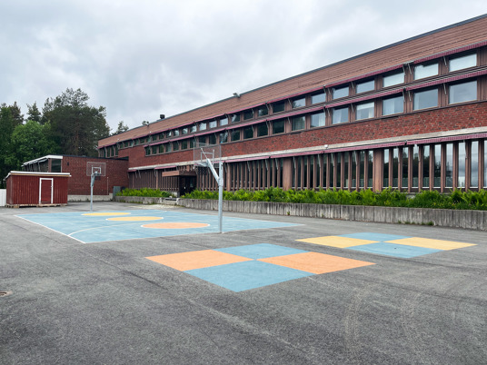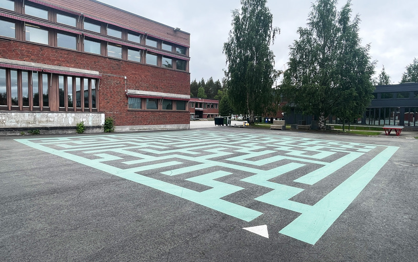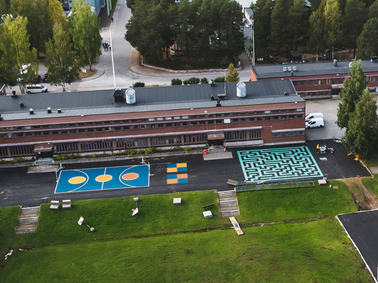 Utöver basketplanen har skolgården även fått king-out-rutor och en stor labyrint, vilket ger eleverna fler alternativ för rörelse, lek och kreativitet under rasterna. Här möts klassiska skolgårdslekar och nya roliga utmaningar i en dynamisk kombination.