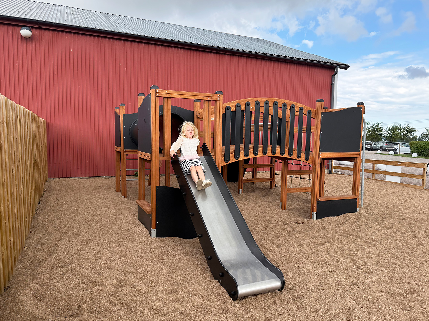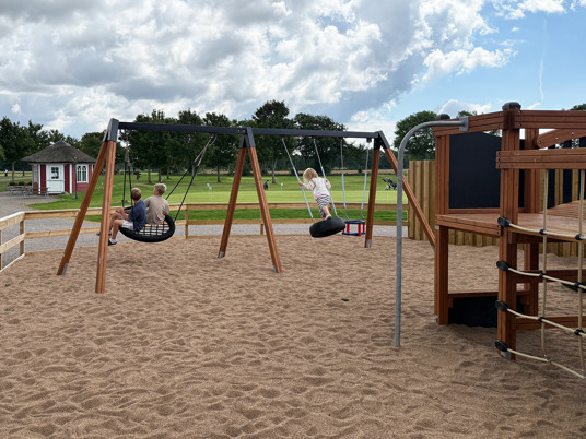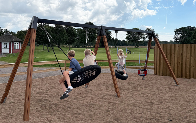 När Allerum Golfklubb kontaktade oss på Tress Utemiljö var målet tydligt: man ville skapa en inbjudande lekmiljö för de yngre barnen som ännu inte tagit steget ut på banan. Resultatet blev en lekplats med både gungställning och en större lekställning med rutschkana, klättermöjligheter och plats för fantasi och lek.