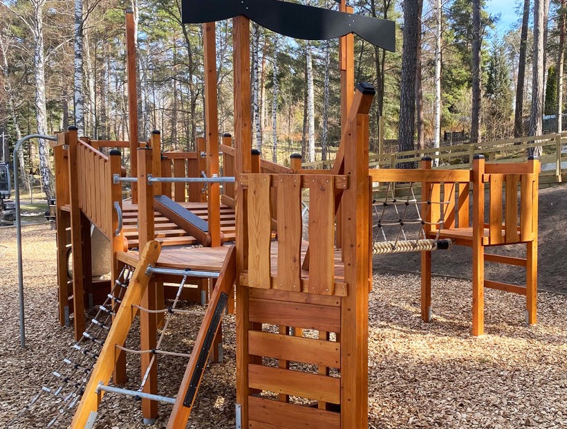 Hjärtat i den nya lekplatsen är Modern Nature Klätterskeppet – en lekställning med en fin kombination av temalek kring sjöfart och en design som smälter in naturligt i den omgivande skogen.