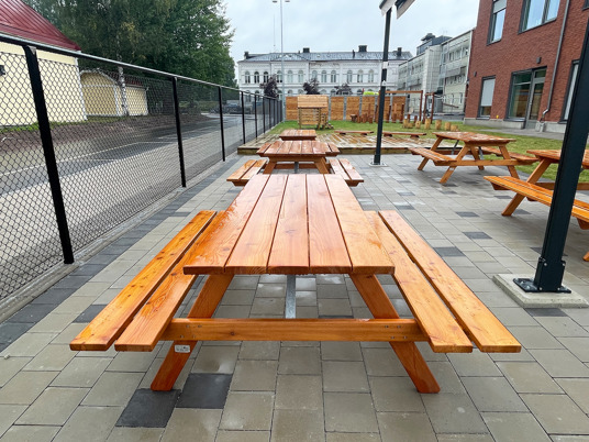 Christinaskolan i Piteå har cirka 350 högstadieelever. I nära anslutning till skolan finns sporthall, ishall, fotbollsplan och populära Norrstrandsbadet. Nu har skolgården fått ett rejält lyft med klätterställning, gungor, bollvägg med basketkorg och hinderbana. Dessutom finns det nya parksoffor, sittstockar och bänkbord utplacerade, både under pergolan och till klassundervisning under utfällbart tak.