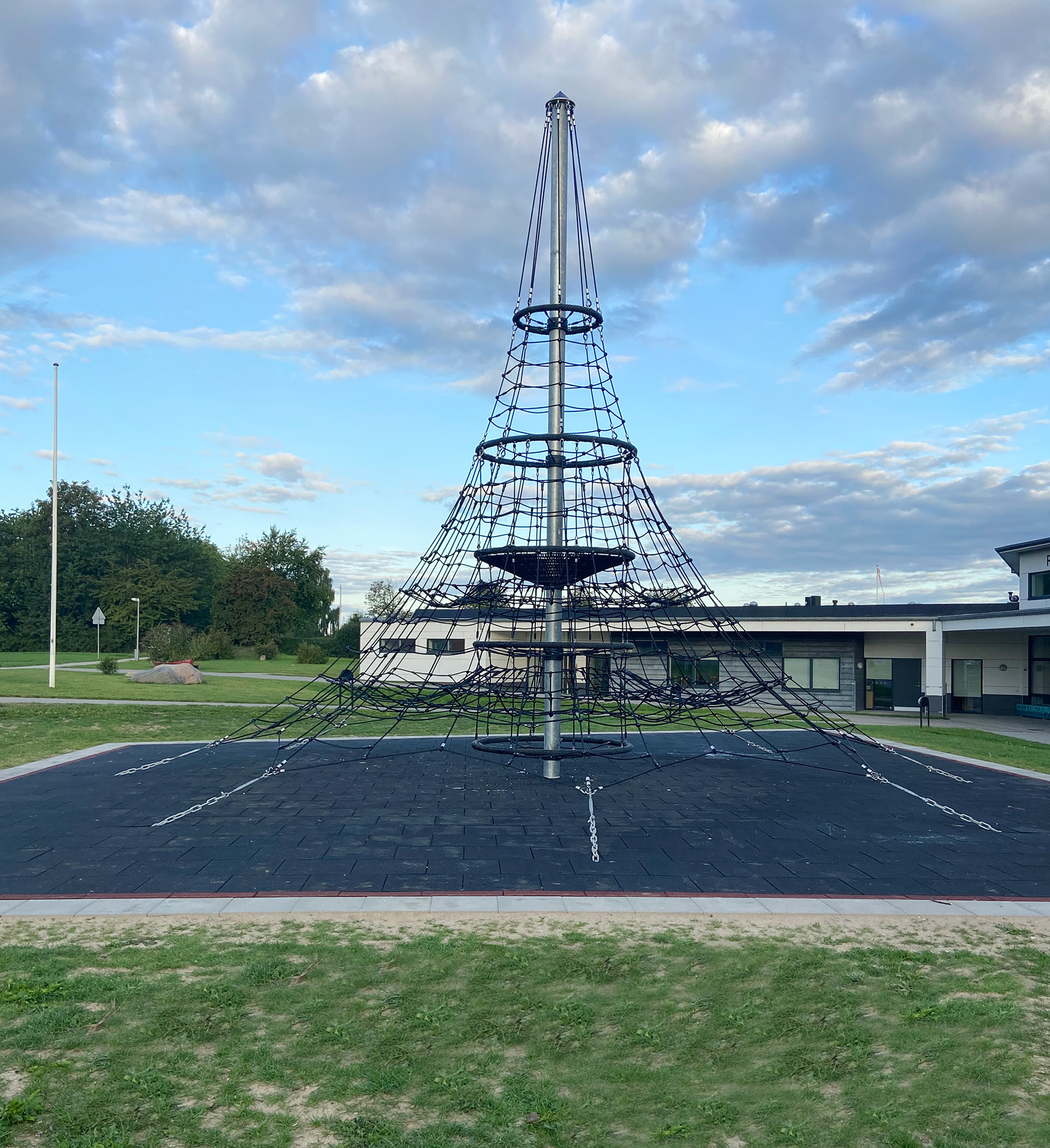 Så sa eleverna på Romalt Friskola när de såg den nya klätterpyramiden framför skolan. Det dröjde dock inte länge förrän eleverna var i full gång med att utmana både mod, motorik och balans i jakten på att först nå toppen på den drygt 8 meter höga klätterpyramiden.