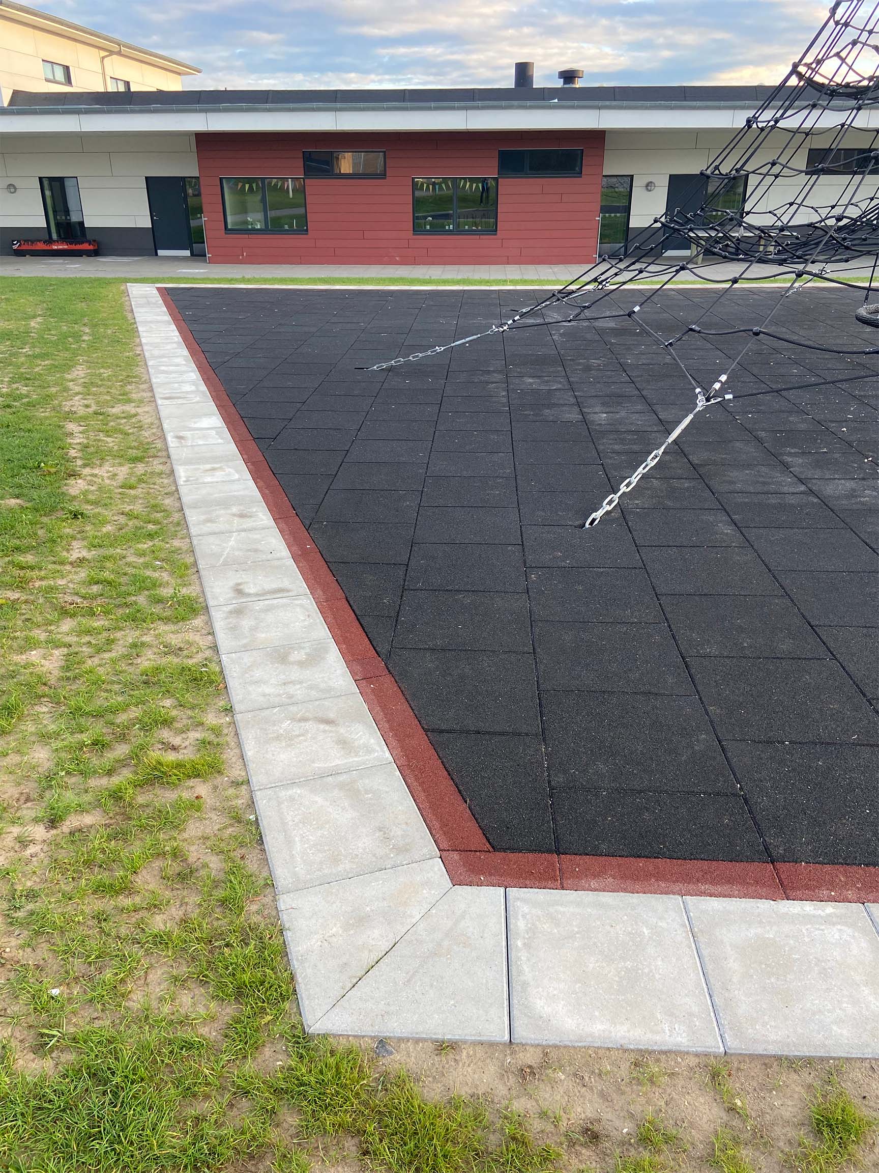 Klätterpyramiden tål både vind, väder och många barnfötter. Den är monterad på skyddande fallskyddsplattor, vilket även innebär att det inte följer med någon sand in i skolans korridorer.