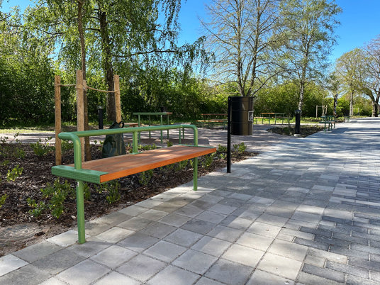 De gula parkbänkarna och bargrupperna fick RAL-färgen 1012 Lemon yellow.