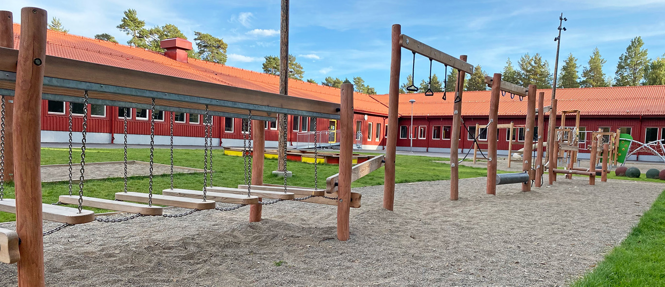 Vi på Tress fick äran att hjälpa till med utrustning till hela skolgården. Från lekställningar, multiarena, bänkar, bord, konstgräs, fallskyddsgummi till linbana, balansbana, bordtennisbord och massor av olika gungor. Vilken härlig skolgård det blev!