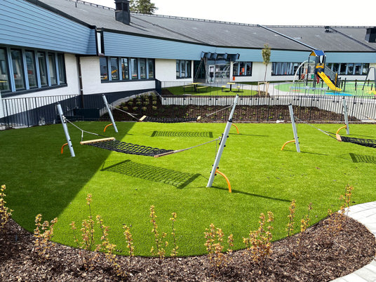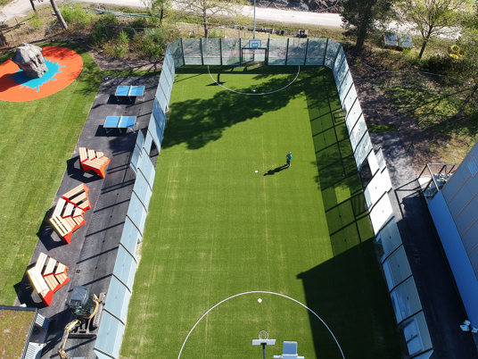 För de som älskar pulshöjande aktiviteter finns här ett komplett utegym med både träningsstationer och en hinderbana. Den stora omnistadium erbjuder många timmars bollspelande. Pingisborden och basketkorgarna är också populära skolgårdsaktiviteter.