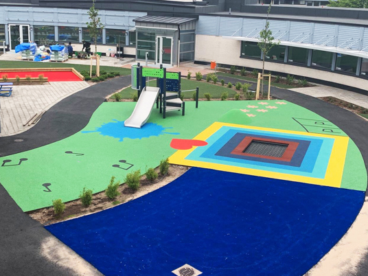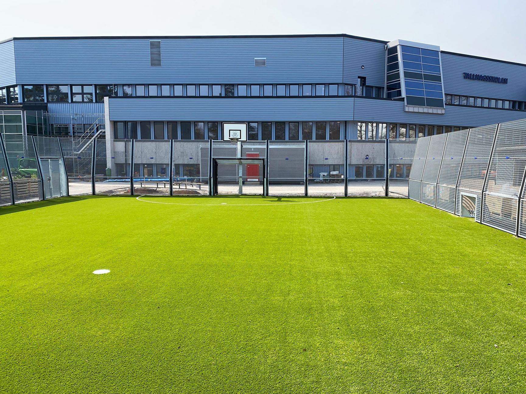 Tallhagsskolan i Kalmar byggdes under 2019-2021 och har nog den mest sprudlande och färgglada skolgård vi varit med och skapat. Var man än tittar finns det något att göra och fästa blicken på. Här går cirka 500 elever i årskurs 7 till 9. Innergården bjuder in till lek, rörelse, vila och häng och delas av Gröndalsskolan, Lindöskolan och Tallhagsskolan.
