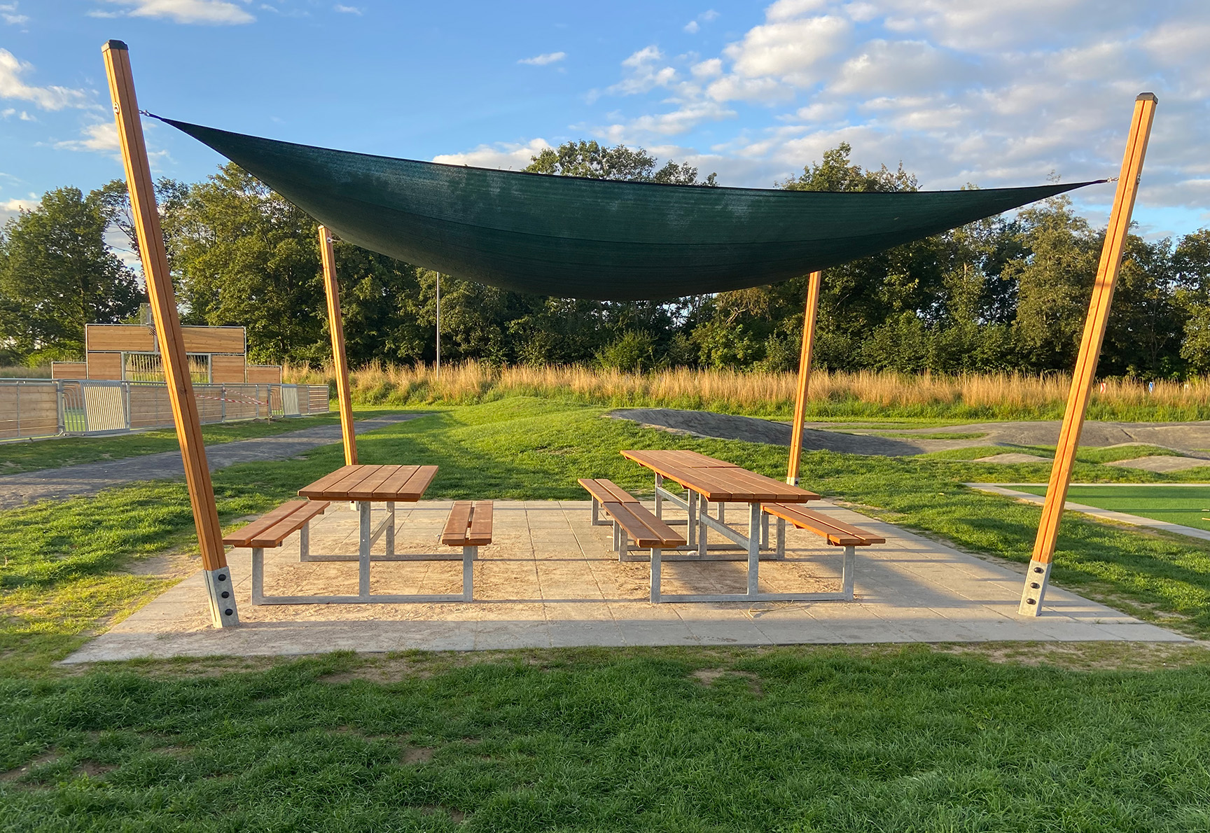 Aktivitetsparken är indelad i flera sammanhängande zoner – en multiarena för diverse bollspel, ett område till utomhusträning, ett centrerat pausområde med många sittplatser under solsegel samt ett område med utomhus bordtennis.