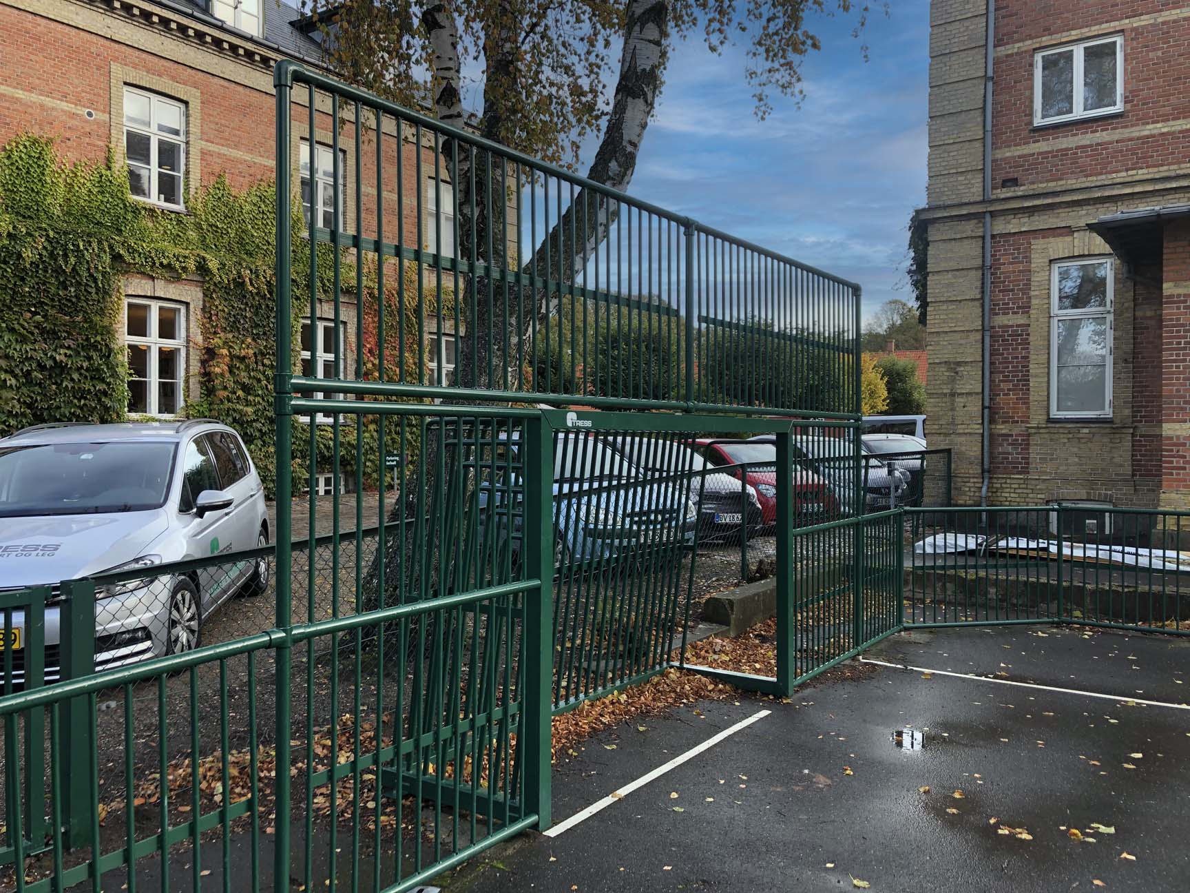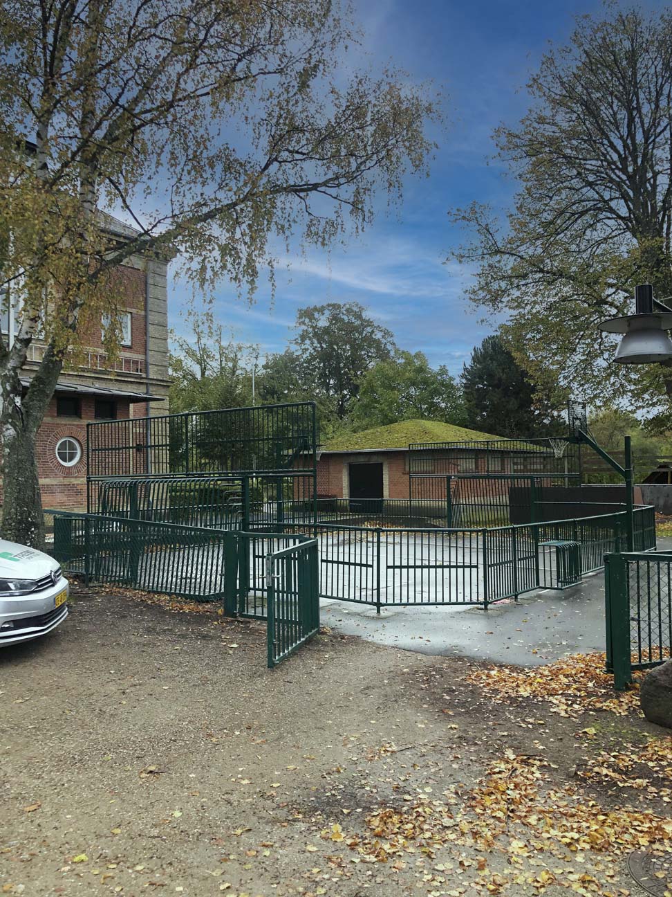 Den mörkgröna lackeringen har valts för att multiarenan ska smälta väl in i de natursköna omgivningarna vid Jægerspris slott.