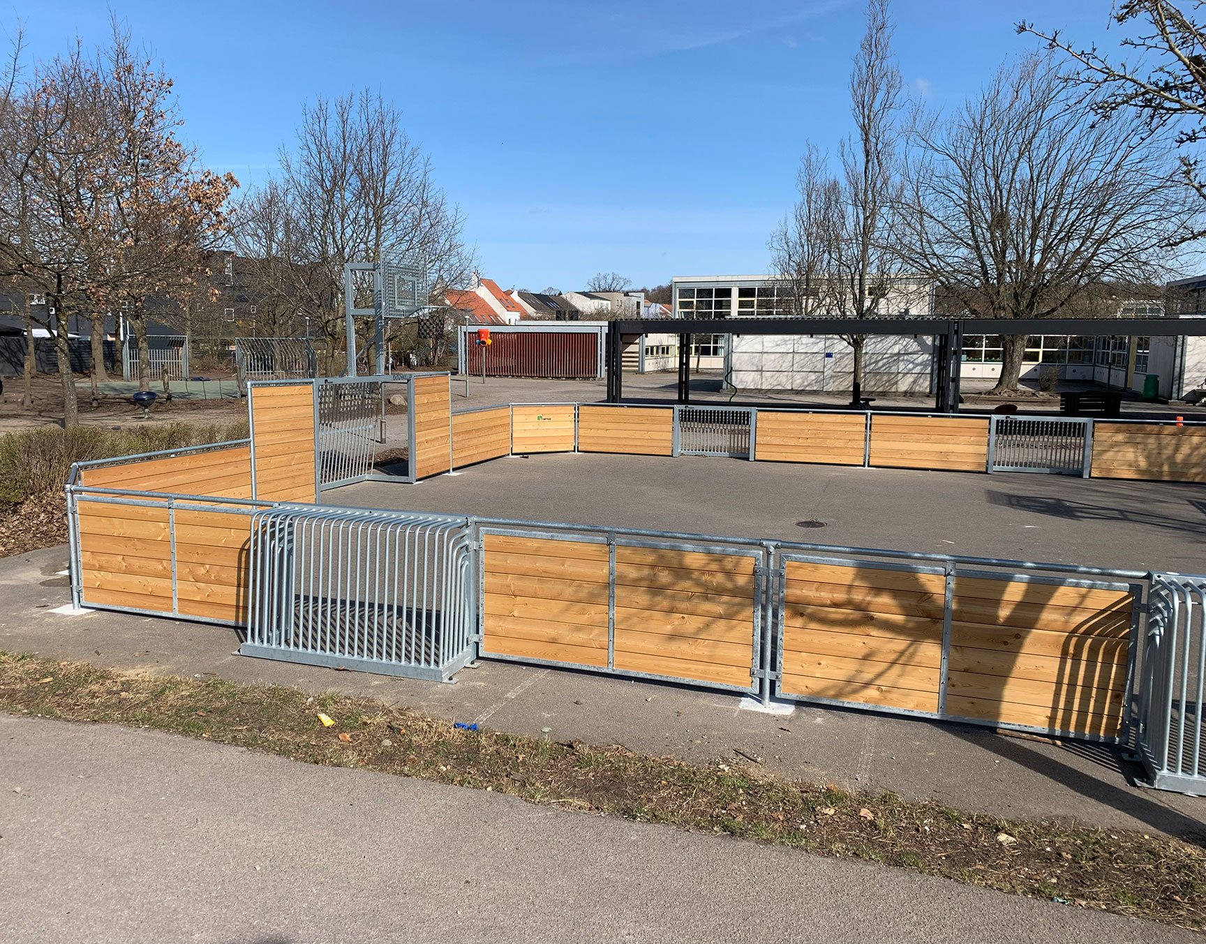 På Skovvejens Skola Øst i Ballerup behövde den gamla multiarenan bytas ut. Vi levererade en helt ny arena till skolan – och monterade den på samma plats och underlag. Nu är arenan återigen en multifunktionell mittpunkt på skolgården.