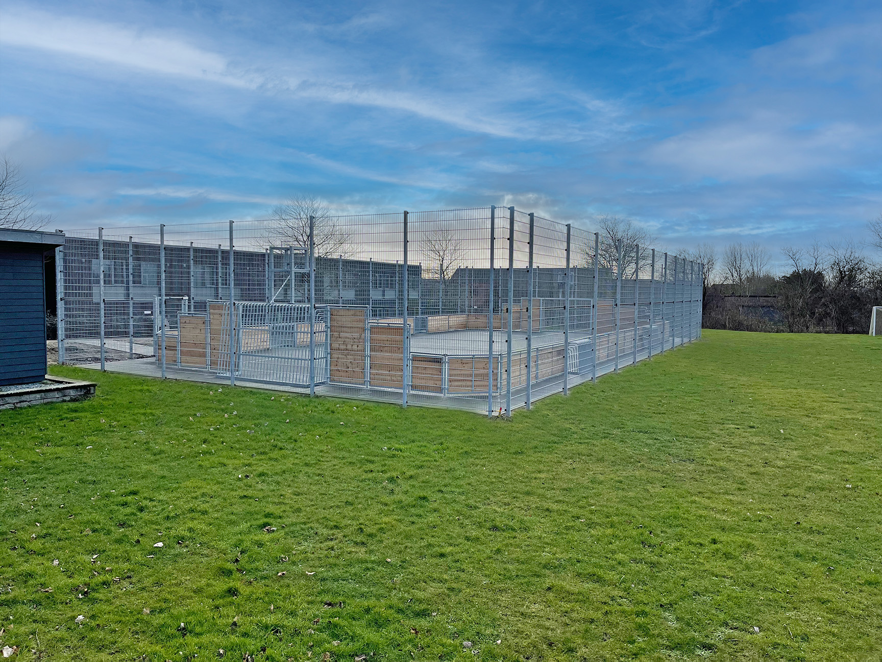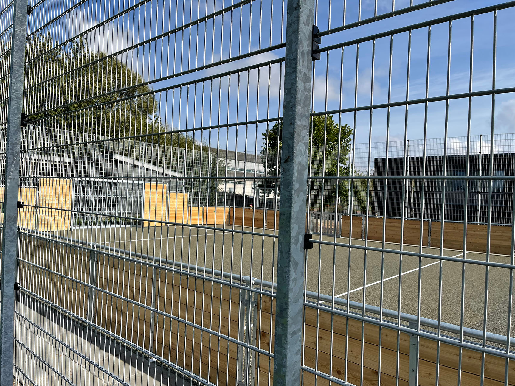 Multiarenan i lärk är en estetiskt tilltalande arena av högsta kvalitet som matchar skolans arkitektritade byggnader och omgivningen i övrigt. Arenan kan låsas och kräver dessutom endast ett minimum av underhåll – och kommer att se fin ut i många år framöver.