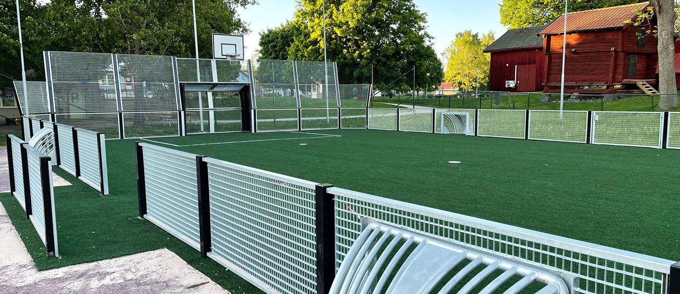 Den tidigare helt tomma ytan på Solberga Skola är nu fylld av spontan idrott och rörelseglädje. Denna omnistadium kan bland annat användas till basket, innebandy, landhockey och fotboll. Både på längden och på tvären av arenan. Det gör att olika aktiviteter kan pågå samtidigt.