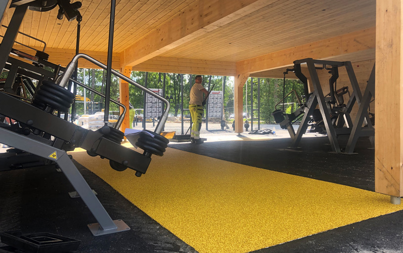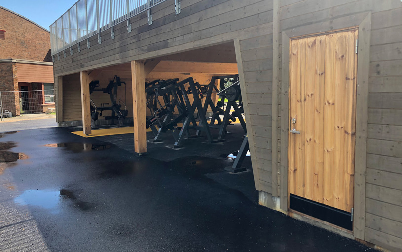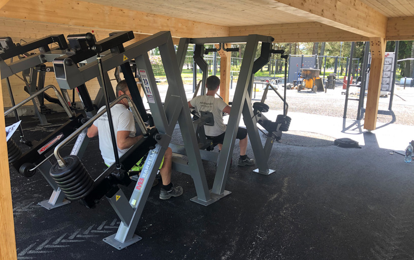 Under ett praktiskt tak står åtta justerbara träningsmaskiner med viktmotstånd, noggrant placerade för att stå emot väder och vind. Detta säkerställer inte bara lång livslängd, utan gör det också möjligt att träna effektivt utomhus – oavsett årstid. Fyra av enheterna har även flexibla säten som enkelt kan skjutas åt sidan, vilket gör att rullstolsburna har lika bra åtkomst som alla andra.
