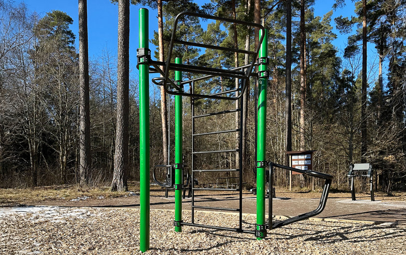Ett kompakt men samtidigt komplett utegym i ett härligt naturområde i Linköping. Här samsas motionsspår, idrottsplats och gymutrustning och skapar en fin helhet som bjuder in till spontan rörelse och planerad träning för alla åldrar.